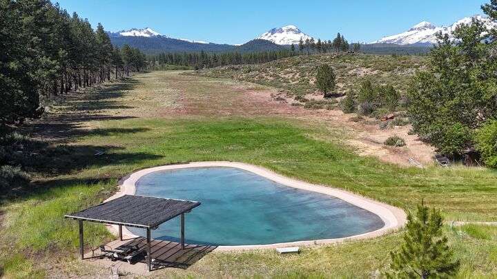 Historic Cascadia Ranch near Sisters, Oregon is available for sale for the first time in over 50 years: 700+/- acres of farm, ranch and timber land at the foot of the Cascades with unobstructed mountain views. This unique property has 80 acres of exclusive water rights, sourced from three springs, a two-story barn, corrals, large ranch house, rustic cabin, equipment and hay sheds, a large swimming pond, fenced fields for horses or livestock, and additional wildlife ponds. Surrounded by public lands, the ranch accesses miles of adjacent horseback and mountain bike trails. A new building site with a commanding mountain view is in place, with utilities installed and septic approval. Enjoy privacy, solitude, wildlife, fresh air, dramatic rock outcrops and open skies, only minutes to the Western town of Sisters, and 30 minutes to Bend. This is one of the Northwest's truly exceptional properties, which could be perfect as a horse farm, mountain retreat or build your dream custom home.