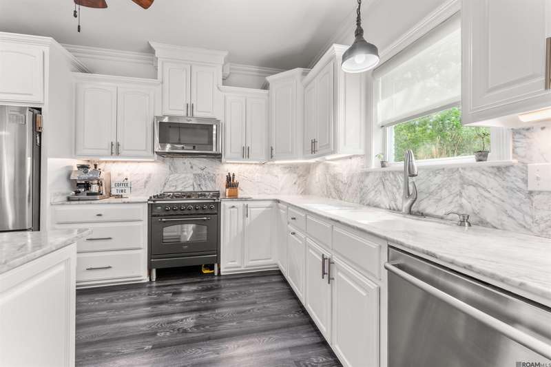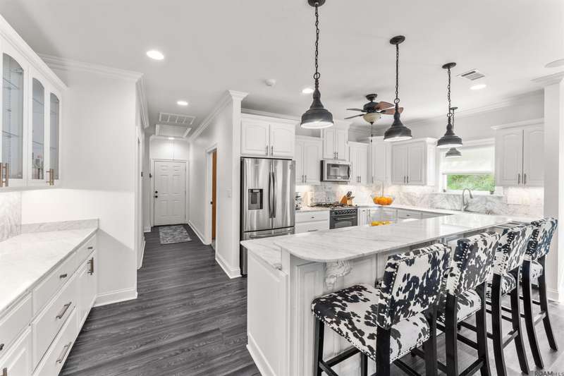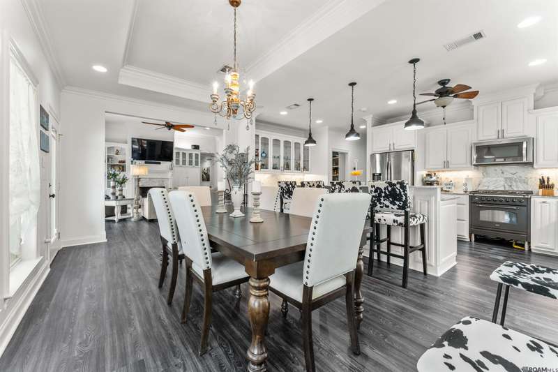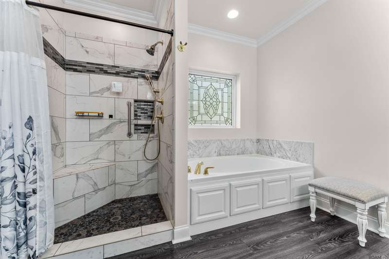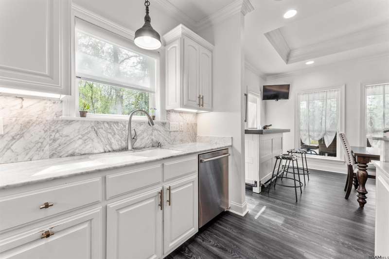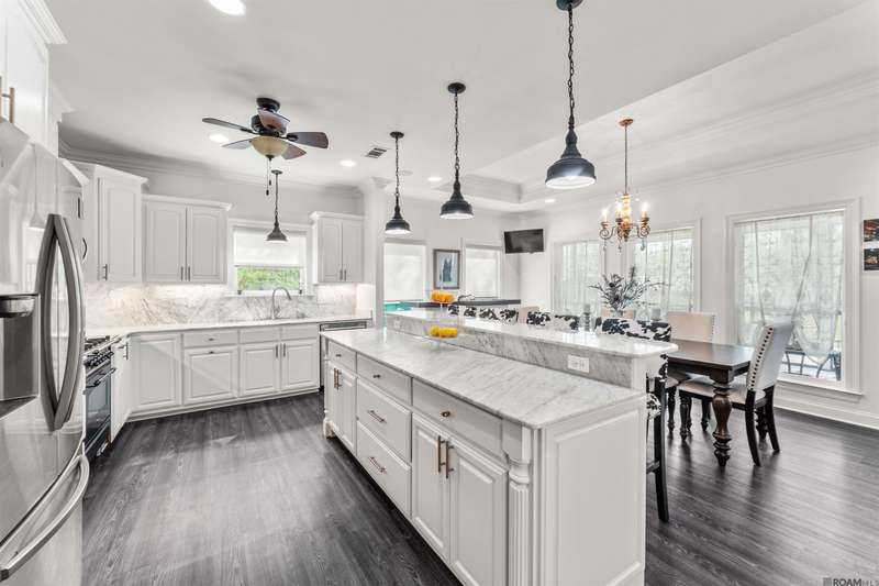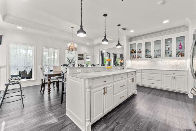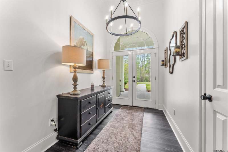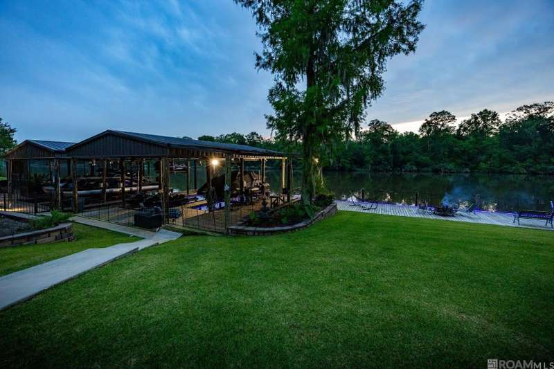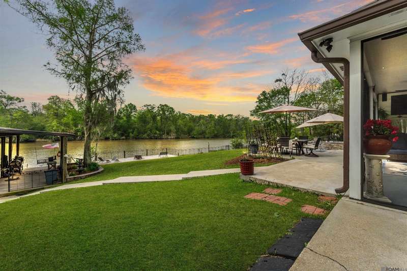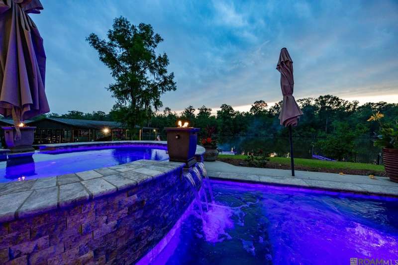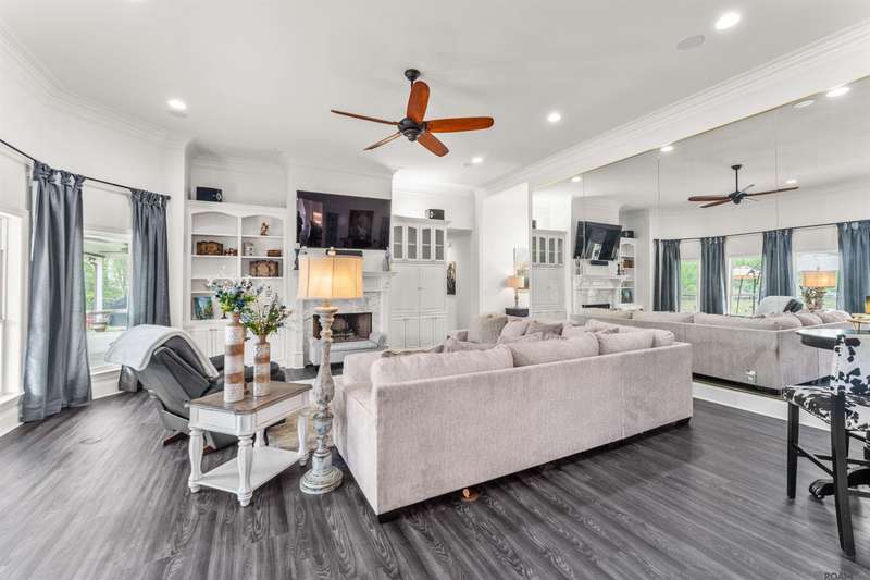 Waterfront living on the Diversion Canal! Experience the best of waterfront living in this exclusive, gated Waterfront Sanctuary Subdivision. This custom-built home offers an expansive 1.56 acre lot, a double boat slip with lifts, and a spa pool with tanning ledges—and that’s just the beginning! Step inside to discover an open floor plan with 12’ ceilings, a wood/gas fireplace, built-in bookshelves, and extensive crown molding. Recent updates include flooring, modern light fixtures and no carpet for easy maintenance. The sizeable windows in the main living areas frame breathtaking river views and fill the space with natural light. The kitchen is a chef’s dream, featuring marble countertops, stainless steel appliances, a gas range, a breakfast bar, and both casual and formal dining areas, plus a bar area for entertaining. Retreat to the primary suite, which offers dual vanities, a soaking tub, a custom walk-in shower, and a spacious walk-in closet. Outdoor living is just as impressive, with a screened-in back patio with ceiling fans, an additional open covered patio, a custom spa lounging/tanning pool, and a private deck. Enjoy the ultimate riverfront lifestyle with this one-of-a-kind property! Priced below recent appraisal and sellers will assist with closing costs or an update allowance.