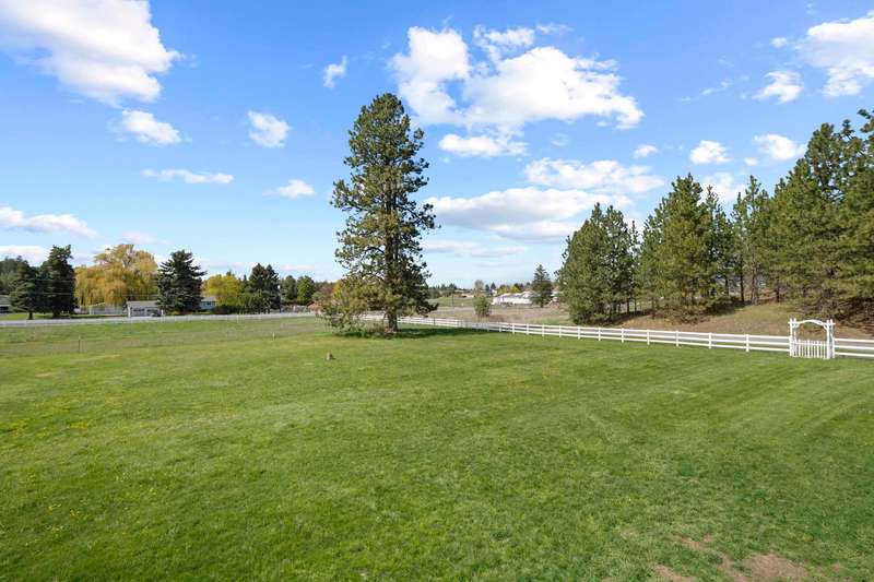First time on the market! This stunning custom-built home and horse property on 4.3 acres offers the perfect balance of rural charm and modern luxury. Just 7 minutes from I-90 and the Valley Mall. The 2-Story home with a daylight basement features 4+ bedrooms, including a primary suite with a sitting room, dressing room and a soaking tub. Enjoy two double-sided fireplaces, custom wood trim throughout, three full bathrooms, and a maintenance-free wrap-around deck. The 3-car garage provides ample storage, and the property is serviced by Vera Water and sewer. Equestrians will love the custom horse barn with five 12x12 covered stalls, each with separate runs, a wash rack with commercial drain, a secure tack room, and rubber mats. There's also a 12x60 garage for your truck and trailer, a 400x160 riding arena, and fenced pastures with turn-out spaces. This exceptional property offers everything you need for country living with modern amenities. Don't miss your chance to call this unique property home!