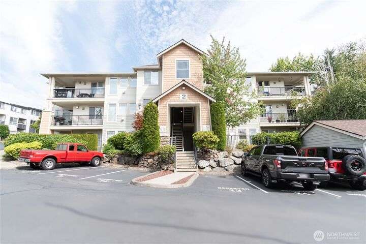 This beautifully maintained 3-bedroom, 2-bath top-floor condo shares no walls in the desirable Meadowdale/North Lynnwood area. New flooring and lighting, complemented by a luxurious plush carpet that enhances comfort along with a new heating system. The open-concept kitchen was remodeled just 3 years ago, featuring stainless steel appliances, granite counters, and undermounted sink. Stylish feature wall with new tile and cozy fireplace. Updated bathrooms and spacious primary suite. Detached garage plus available reserved parking in front. Dues covers W/S/G and a well-managed community that maintains the grounds, buildings, and utilities, along with a shared gym, theater, and event space. With nearby transit options, commuting is a breeze.