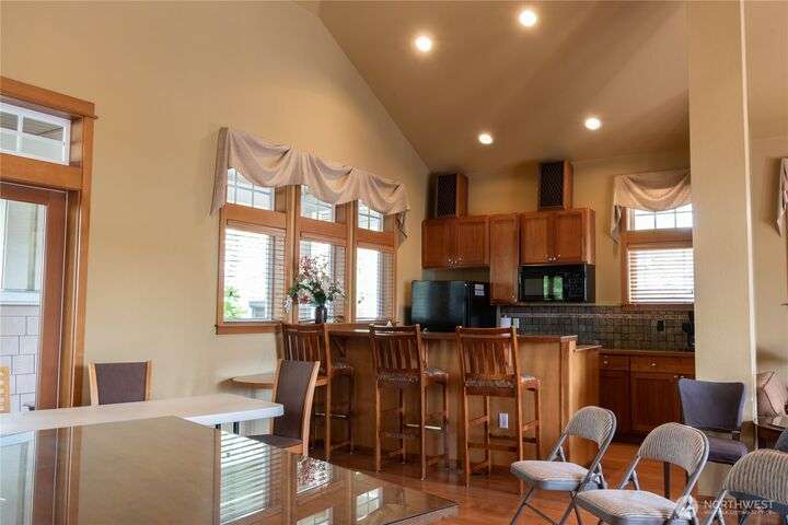 This beautifully maintained 3-bedroom, 2-bath top-floor condo shares no walls in the desirable Meadowdale/North Lynnwood area. New flooring and lighting, complemented by a luxurious plush carpet that enhances comfort along with a new heating system. The open-concept kitchen was remodeled just 3 years ago, featuring stainless steel appliances, granite counters, and undermounted sink. Stylish feature wall with new tile and cozy fireplace. Updated bathrooms and spacious primary suite. Detached garage plus available reserved parking in front. Dues covers W/S/G and a well-managed community that maintains the grounds, buildings, and utilities, along with a shared gym, theatre, and event space. With nearby transit options, commuting is a breeze.