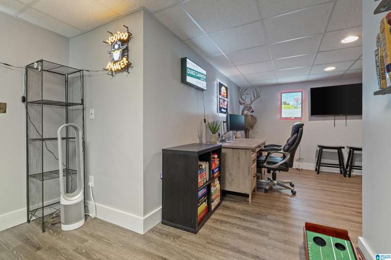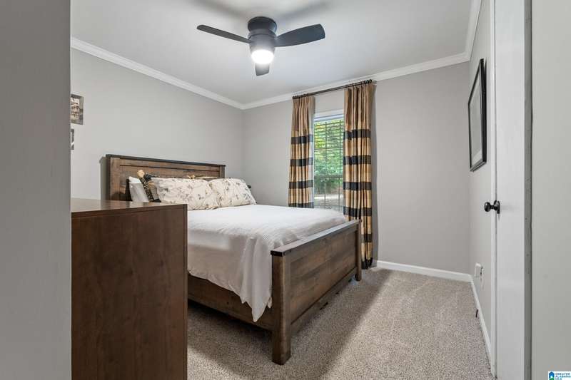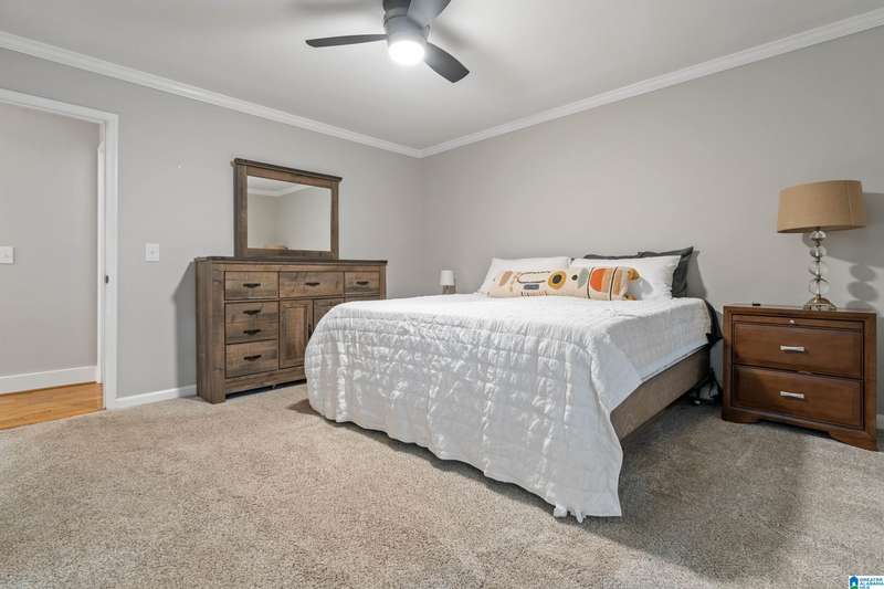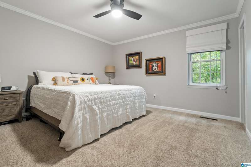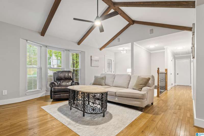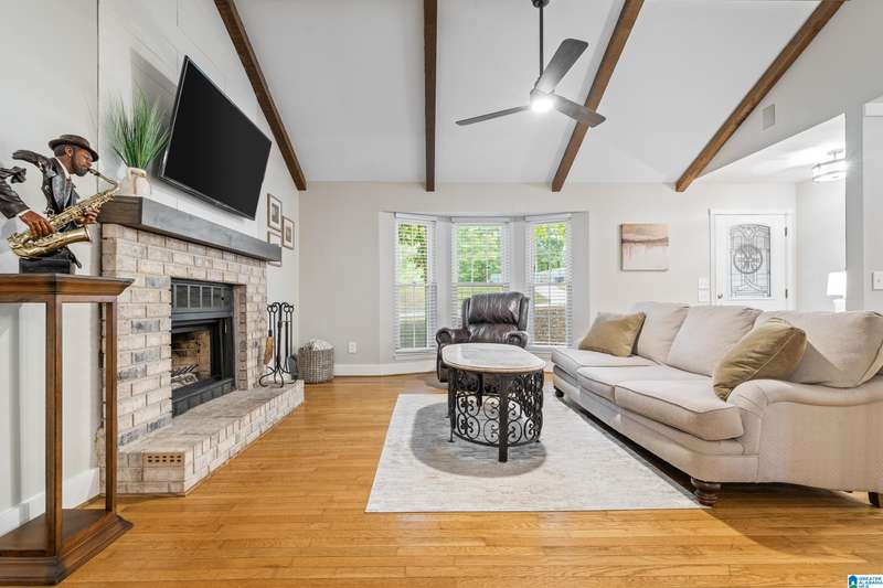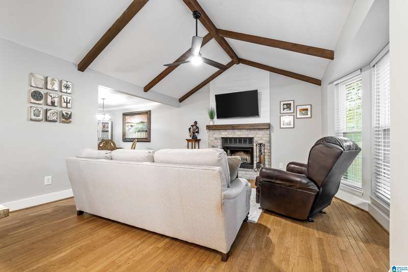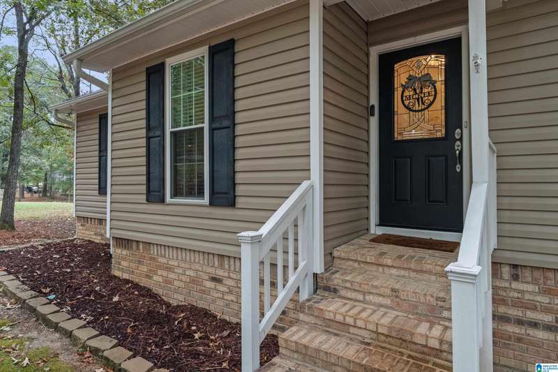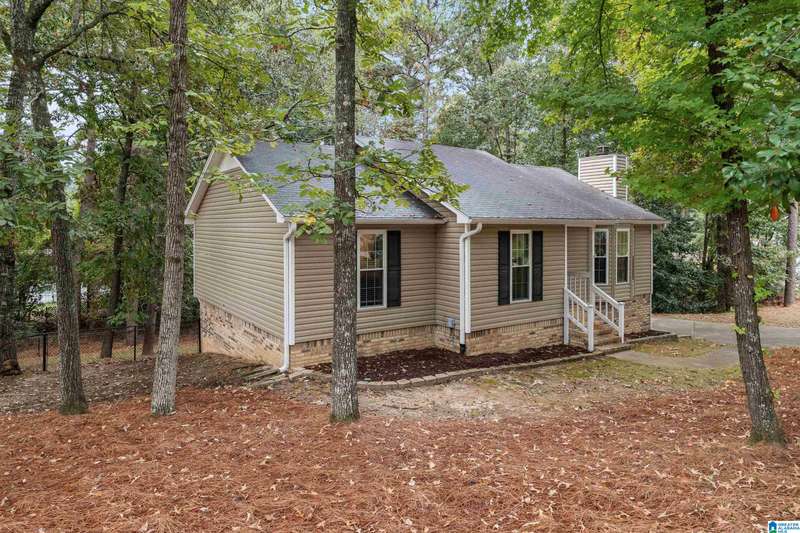 Charming, move-in ready home on a beautiful ¾ acre lot. This 3BR/2BA home features a spacious great room with exposed wood beam ceilings, floor-to-ceiling windows, and a cozy brick fireplace. Updated kitchen boasts granite counters, tile backsplash, stainless appliances, and instant hot water. All bedrooms on the main level with new carpet. The large dining room offers plenty of space for gatherings & features windows overlooking the backyard. This house offers new lighting, blinds, and fresh interior paint throughout. Popcorn ceilings removed! Both full baths are stylishly updated. Finished basement bonus room offers great flex space for playroom, home office, or media room. Enjoy the freshly stained deck and newly cleared backyard—ideal for outdoor fun. Recent upgrades include new HVAC, outlets, disposal, faucets and more. Convenient to Hwy 31 and major shopping. This home blends comfort, charm, and modern updates in a peaceful, wooded setting! Move-in ready.