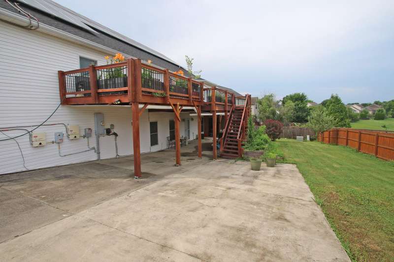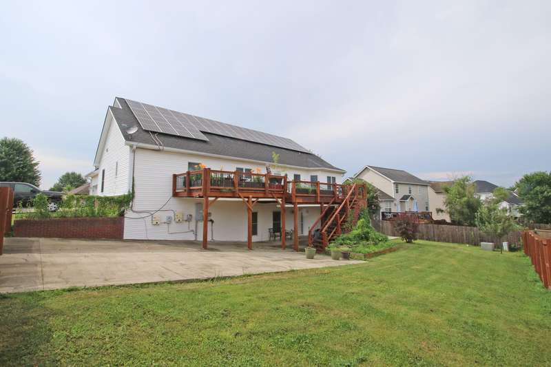 This 4,589 sq ft home is perfect for large or multi-generational families, with two full living spaces. Each featuring kitchens, living rooms, bedrooms, and baths. The main floor offers 3 bedrooms, 2.5 baths, including a spacious primary suite with walk-in closet and double vanity. The kitchen has newer stainless appliances, a new backsplash, and vent hood. The walkout basement includes 2 bedrooms, 2 full baths, a full kitchen, and a large living area. Additional features include two driveways, all-new flooring (no carpet), new ceiling fans, ample storage, two hot water heaters, 400 amps of power, a newer furnace, and new exterior A/C. Security and smart tech include ADT and MyQ garage opener. Outside features a fully fenced yard, upper deck, and lower patio. Seller will repair part of the deck railing and a small hole in the ceiling in the basement. An $80,000 solar panel system, one of Kentucky's largest residential installs, has cut bills by over half! It's a perfect setup for families who value space, privacy, and the ability to live together without sacrificing independence. Homes like this are incredibly hard to find! Don't miss your chance.