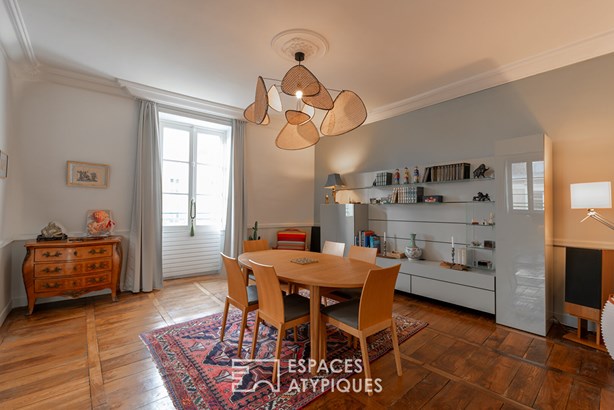 Discover this bourgeois apartment ideally located in the heart of the dynamism of Rennes, in the immediate vicinity of the most popular addresses in the city.