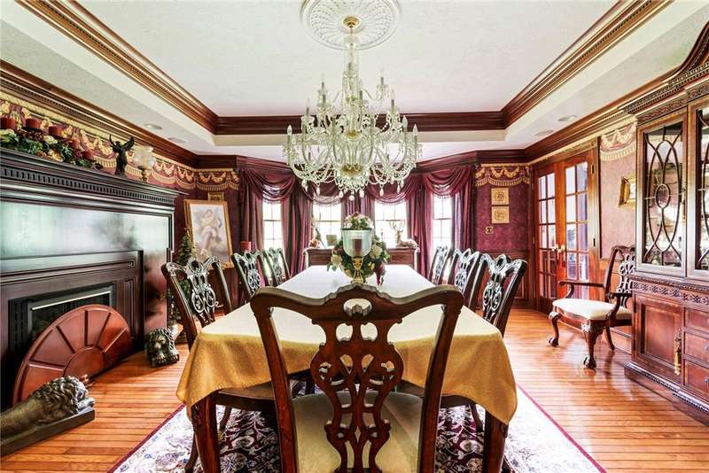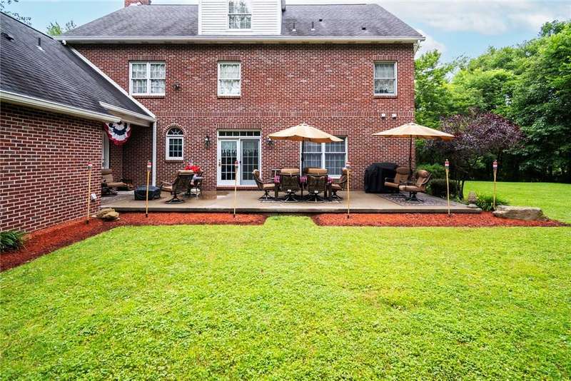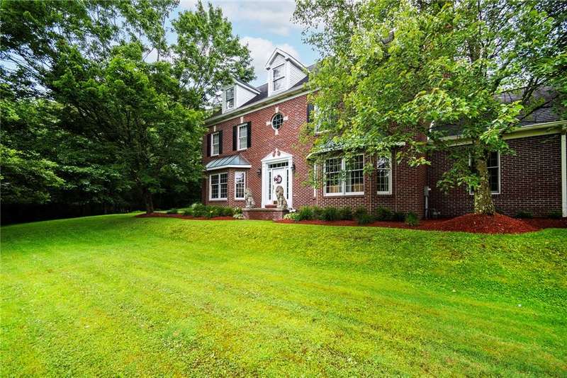 Unparalleled architectural excellence abounds in this masterfully-designed, quality crafted brick residence emanating with intriguing detail. Nestled on a private, level 3-acre lot, this solid brick colonial executive home offers over 3,500 square feet of unsurpassed custom quality, plus an additional 1,054 sq ft ;on the roughed-in third floor—ideal for future expansion to include bedrooms 4 and 5 and another full bath. A true masterpiece, the home welcomes you with a grand two-story foyer adorned by an alluring curved staircase and a motorized chandelier ;for effortless maintenance. Eloquent mahogany and oak trim flow throughout the home, underscoring timeless craftsmanship built to endure. The gourmet kitchen is a chef’s dream—fully equipped with granite counters, a central island, and ample cabinetry. Ideal for modern living, a dedicated home office/den ;includes an en-suite powder room, perfect for remote work. Entertain in style with a formal living room ;featuring a deep trayed ceiling, bayed window, wainscoting, and dentil mouldings, or host elegant dinners in the dining room ;complimented by French doors and a commanding fireplace. The intimate family room ;offers warmth and character with a rustic wood ceiling, wet bar, and cozy fireplace. The partially finished basement ;adds even more functional space, complete with a bar area—ideal for game nights or casual entertaining. Enjoy outdoor relaxation on the private rear patio, surrounded by a level yard ideal for a future pool. With public utilities ;and easy access to Routes 488, 288, 19, and I-79, this one-of-a-kind custom home offers luxury, convenience, and room to grow—all in a stunning private setting. A rare opportunity—this executive residence is sure to please the most discriminating Buyer!