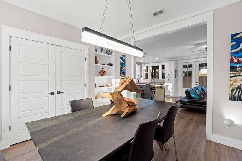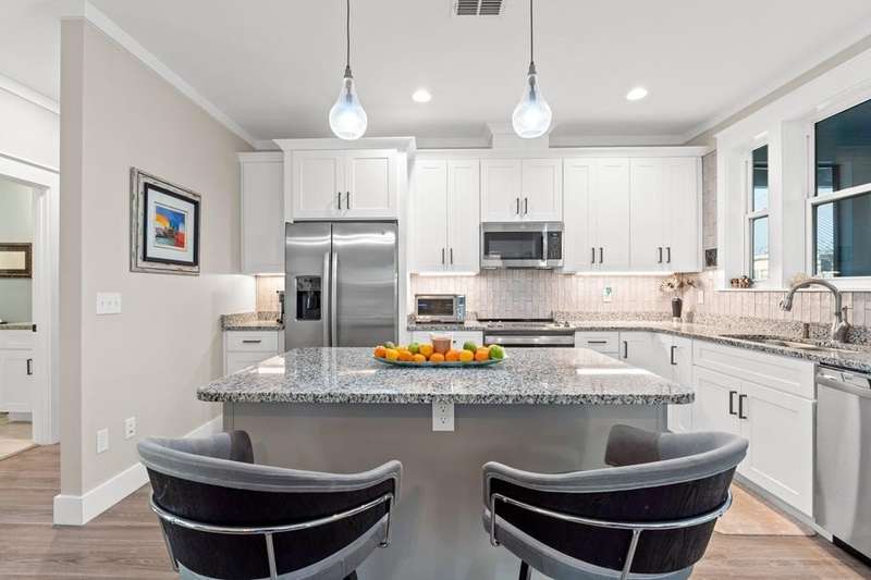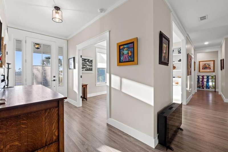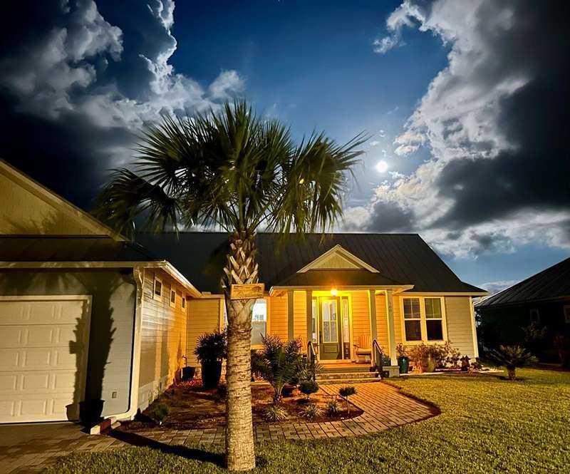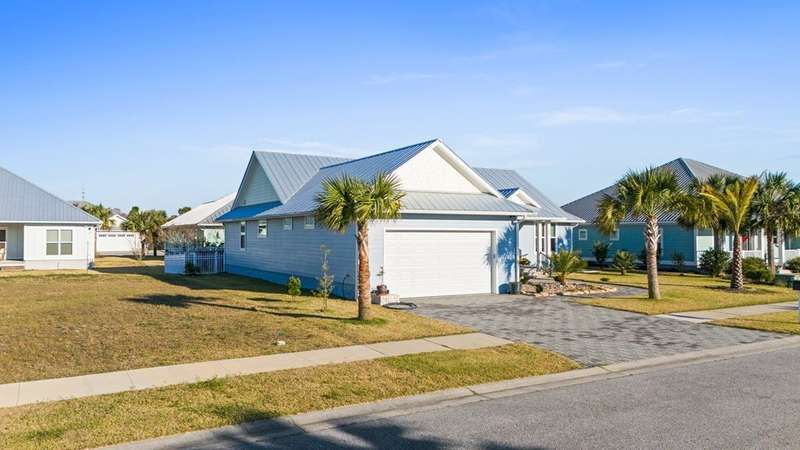Immaculate one-owner, custom-built home offering exceptional quality, style, and comfort just minutes from the white-sand beaches of Mexico Beach. This 3-bedroom, 3-bath home features an open-concept floor plan with a spacious living area, perfect for entertaining. The kitchen is both beautiful and functional, featuring granite countertops, a custom tile backsplash, large island with additional storage, upgraded lighting, and enhanced electrical features. The primary suite includes a spa-like ensuite with double vanities, a soaking tub, tiled walk-in shower, and a large custom walk-in closet. Enjoy indoor-outdoor living with French doors leading to a screened-in porch ideal for relaxing in the coastal breeze. Numerous upgrades include oversized 2-car garage with EV charger, aluminum fencing with solar lighting, 6-inch gutters, dining room chandelier, and top-down bottom-up blinds. Professionally landscaped yard features hardscape rock accents, brick pavers, and mature trees, including Sylvester palms, Japanese pines, a tupelo tree, Japanese maple, and a Meyer lemon tree. Located in the desirable Casuna subdivision, residents enjoy access to a community pool, clubhouse, and well-maintained surroundings—all just a short golf cart ride from the beach, shops, and restaurants. This beautifully upgraded home is move-in ready and perfect for full-time living. You'll enjoy a peaceful neighborhood vibe, friendly neighbors, and a real sense of community. No short-term rentals allowed.
