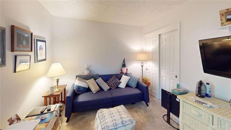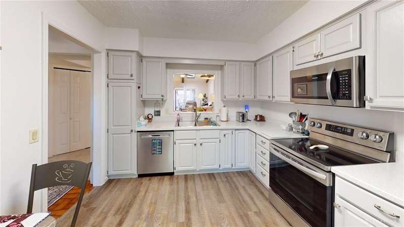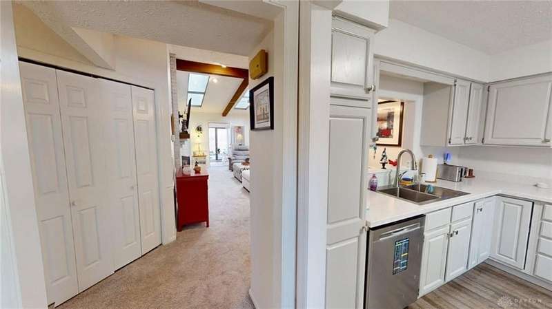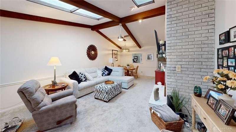 Beautifully decorated, updated and fully furnished condo, well maintained & move-in ready with a two-car attached garage. When you enter this home, you are greeted with tons of natural light from multiple windows/glass sliding doors and skylights. An enclosed patio for you to enjoy the great outdoors from inside the enclosed fully private patio and garden area. Indoor sunroom has dual access from the patio and from the large living room. Wood beams, skylights & updated architecturally designed ceilings make this unit a welcoming place to call home. The living room has a beautiful wood burning fireplace to provide a warm cozy atmosphere during cool temps. Seller has not used fireplace, and the chimney and fireplace are not warranted. There is dining space off the living room, and the Kitchen has an eat-in area, granite counter tops, new refrigerator in 2021, new range 2021. Patio has new concrete pad and new lighting 2023, garage interior painted 2024 and new ceiling insulation added in 2022. Second bedroom, currently used as office. Washer and Dryer remain including all appliances and furniture except patio chairs DO NOT REMAIN. All information believed to be accurate; however, Buyer to perform own inspection and confirm all information and measurement which are estimated.