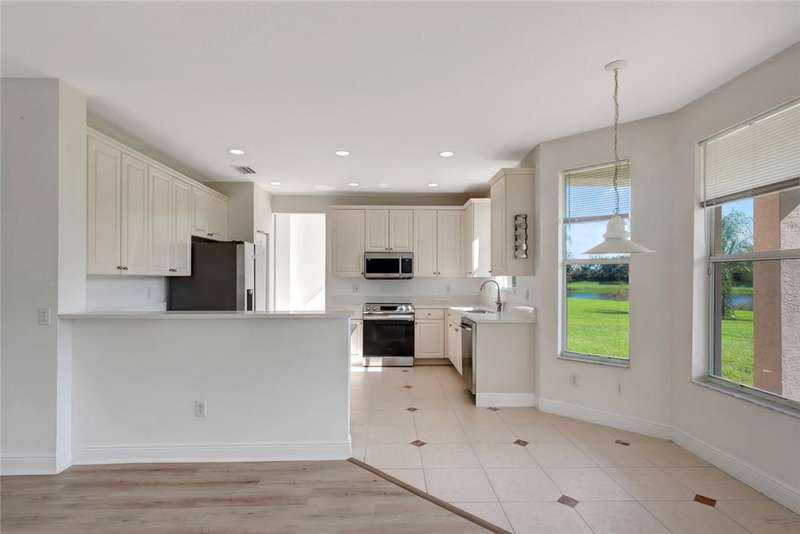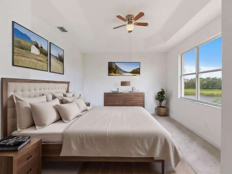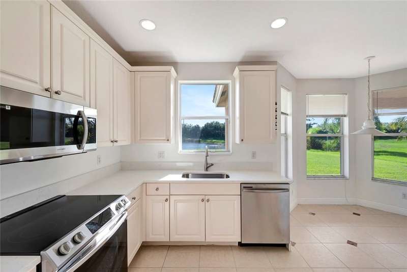 LAKEFRONT Immaculate 5BR, 3BA home in a highly coveted gated community. Home offers a downstairs bedroom with French doors, perfect for an office setup. Featuring soaring ceilings and recent upgrades including fresh paint, premium waterproof vinyl flooring, new HVAC systems & sprinkler system. The contemporary kitchen is equipped with brand new quartz countertops & SS apps. Covered porch to take in the scenic lake views & expansive private backyard, ideal for a pool. Just a short walk from the amenities: pickleball/tennis, clubhouse, gym, 2 pools, play area, basket ball & volley ball!Szaxsj2er