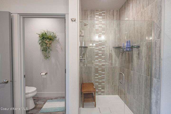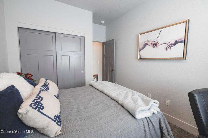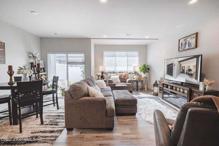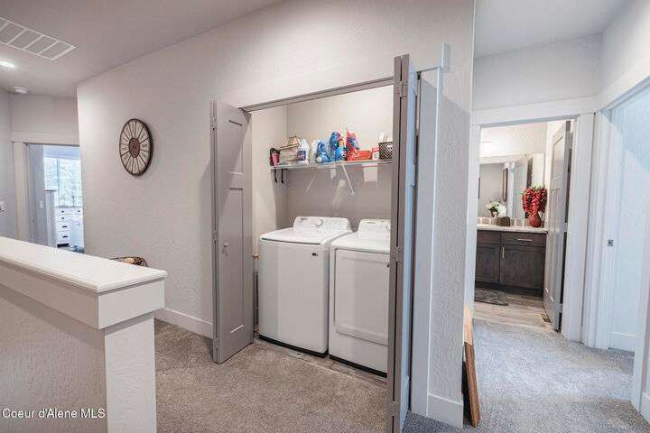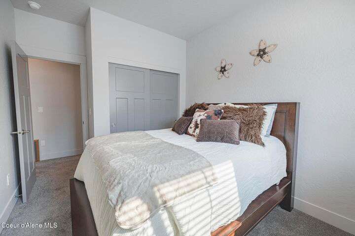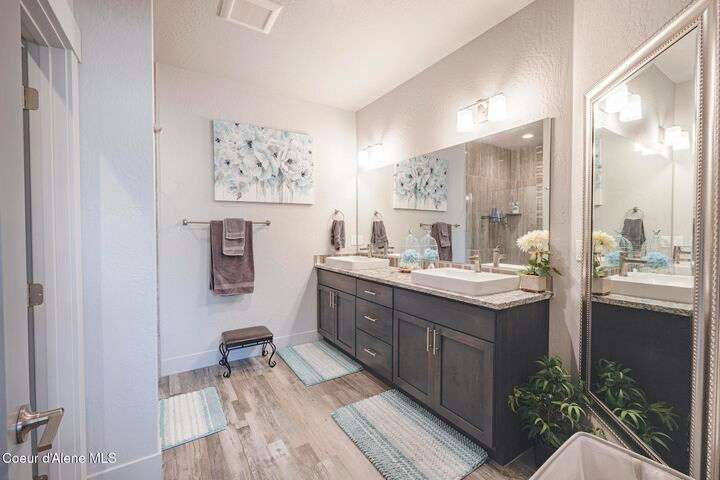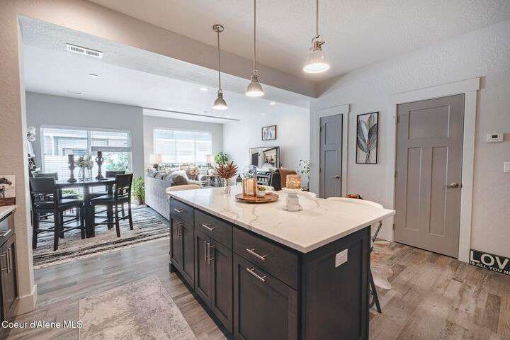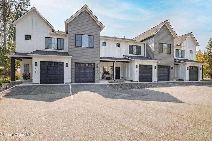 This stunning 3-year-old condo combines quality construction with modern style and thoughtful design. Offering 3 bedrooms & 2.5 bathrooms, it features custom touches throughout, including 9-foot ceilings, durable fiber cement siding, central air, and beautiful wood blinds. The kitchen is a true centerpiece with quality stainless steel appliances, a stainless farmhouse sink, soft-close cabinetry & a large quartz island ideal for cooking and entertaining. Warm LVP flooring flows throughout the living spaces, creating an inviting and low-maintenance environment. The primary suite includes a spacious walk-in closet and a luxurious bathroom with a granite double-sink vanity and an oversized walk-in tiled shower. The second full bathroom is equally impressive, with a granite vanity and a deep soaking tub surrounded by tile. A covered patio extends the living space outdoors. Every detail of this home reflects comfort, style and quality. Great location. Close to everything.