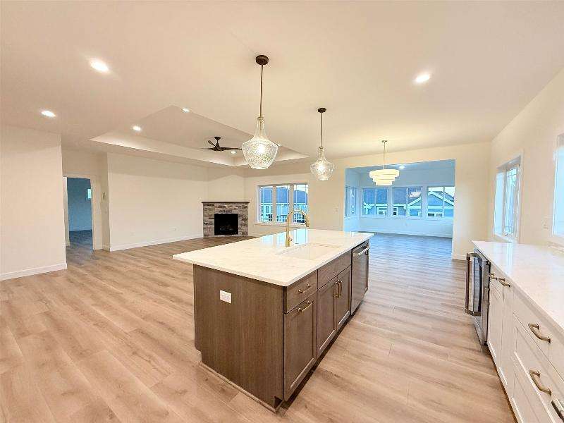 Just Completed! Stunning Custom-Built Ranch home, over 3210 sq ft, 5 Bedrooms (5th bedroom has LVP for flex room/exercise rm) and 3 Bathrooms. Open concept with beautiful kitchen, SS appliance package, solid surface quartz counter tops, walk-in pantry, large island, deck & dual zone heat. Great room with tray ceiling, fireplace, bright sunny dining area opens to large sunroom. Owners' suite with tray ceiling & spa like bath, large walk-in tile shower & heated floors. Lower level: Spacious family room with wet bar, full walk out & patio, huge 4th & 5th bedroom with large windows for an abundance of light. Oversized heated 3 car garage. All of this, in the highly sought after Savannah Brooks, blocks from neighborhood park & Token Creek County Park.