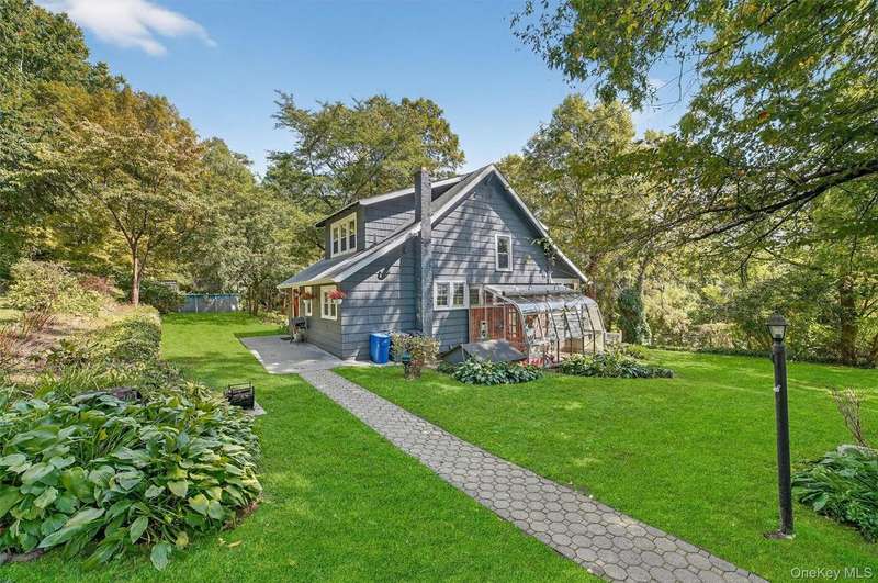 Discover a charming retreat where timeless craftsmanship meets modern convenience. Set on a sprawling 6 plus -acre lot bordering the Westchester Land Trust in the heart of Cortlandt Manor, this warm and cozy home offers exceptional privacy and a picturesque setting. The property invites a lifestyle of exploration, with walking trails and beautiful, blooming gardens right outside your door. Inside, classic details shine, including the inviting floor plan, hardwood floors and stone fireplace. The home features a spacious dining room with lovely garden views with french doors leading to a patio for entertaining and a well-appointed kitchen boasting an induction stove and a large pantry for storage or can be converted to a breakfast nook an updated full bath with a tub. A reverse osmosis system has been added for your convenience in the kitchen. Upper level has three bedrooms with hardwood floors, a cedar closet in the middle bedroom and an updated full bath with an open shower concept. Unfinished basement for extra storage, laundry area and utility area. An extra bonus for the gardening enthusiast is the amazing greenhouse. Enjoy easy access to major parkways, golf course minutes away, train station for a seamless commute to NYC. Come take a look at all this home and property has to offer.
