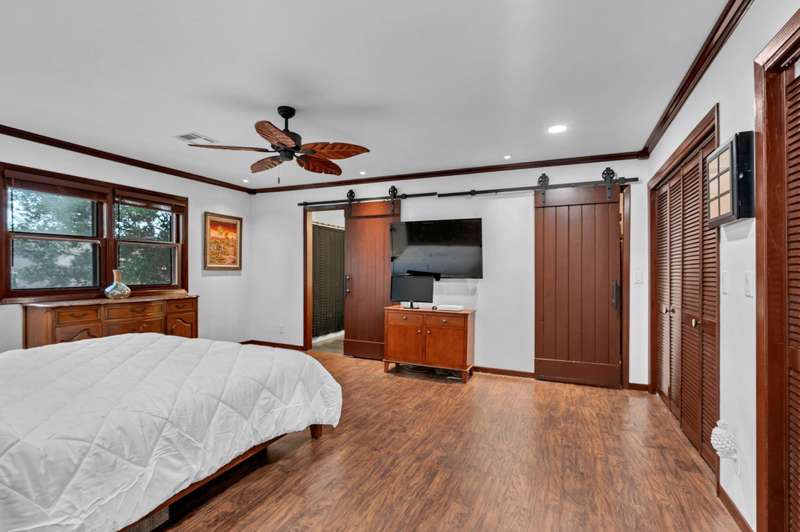Located in the desirable Amarado Estates, this vibrant home is an entertainers dream! Featuring 4 bedrooms, 3 full baths, and 2 half baths, this stunning property showcases beautiful wood-laminate floors throughout and offers two primary suites one on the main level and another upstairs. The backyard oasis boasts a gorgeous kidney-shaped pool with a new liner, new pump, and newer heater, complemented by a sunroom complete with a pool bath and relaxing hot tub. An additional half bath off the kitchen makes hosting guests a breeze, while the main floor also includes a spacious living room, cozy family room, and elegant formal dining area. The lower level offers a versatile family or office space and a room currently used as a music studio, featuring specially insulated, soundproof sheetrock ideal for conversion into a theater or hobby room. The home is topped with a new IR CertainTeed Presidential roof and has been meticulously maintained throughout. Nestled in a beautiful, established neighborhood, this expansive home offers serene, resort-style living every day truly a must-see!