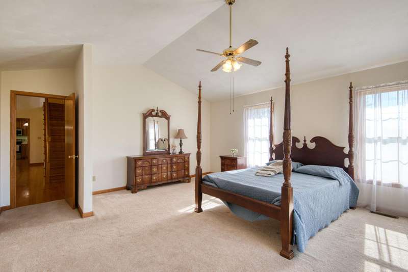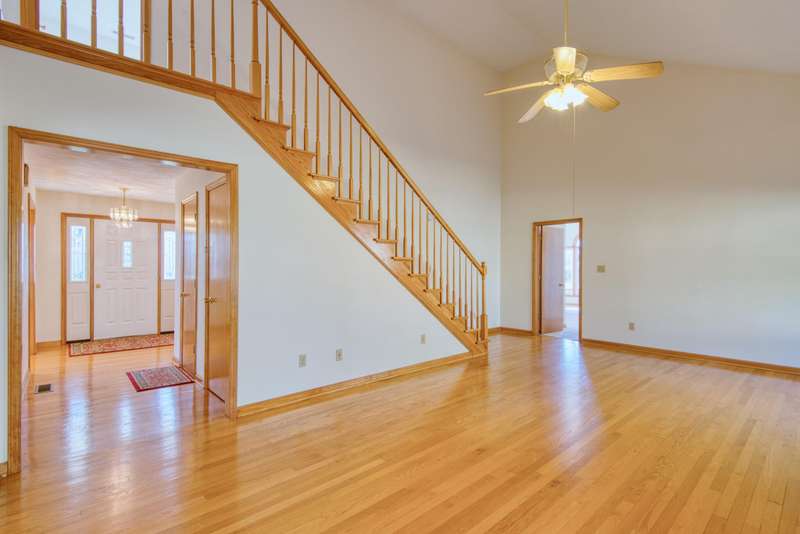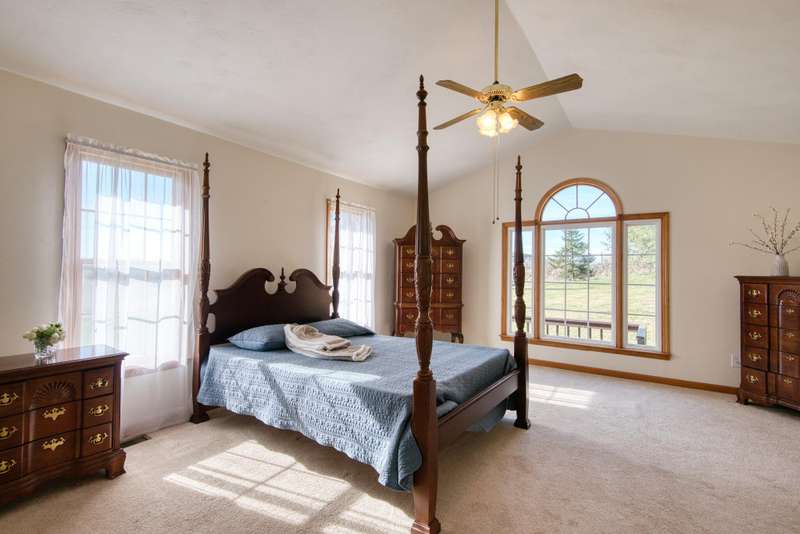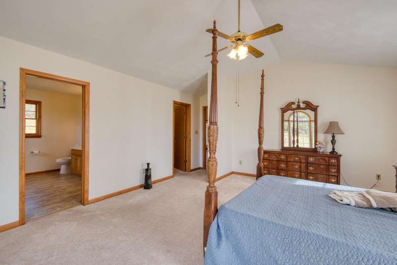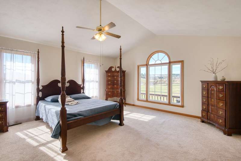 This custom built, four bedroom, two and a half bath brick home is nestled on 2.5 acres with a level front yard, back deck and two-car garage. The floor plan is perfect for entertaining with a formal living room, formal dining room and massive family room with vaulted ceilings overlooked by the eat-in kitchen with breakfast nook. The primary bedroom suite and laundry room are on the main level with beautiful hardwood flooring throughout most of the main level. Relax on the covered front porch or large rear deck. There is plenty room to expand in the full basement with woodstove. This home is better than new and in move in condition. Come see today!