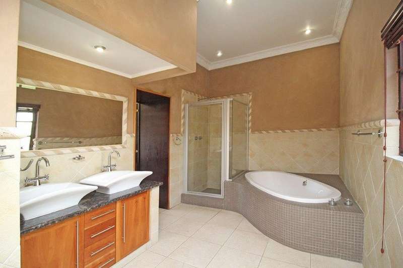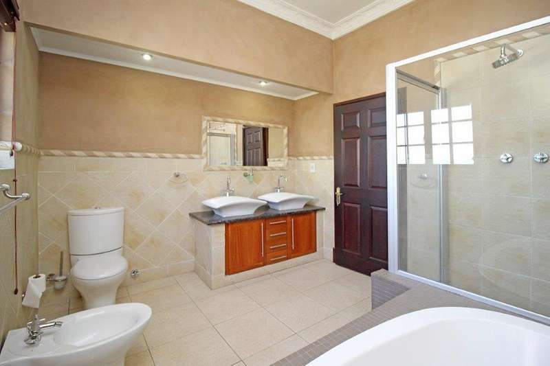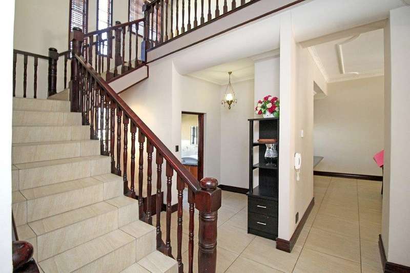 Step into exquisite living with this magnificent 5-bedroom home nestled in the secure boomed area of Dowerglen. A majestic driveway sets the stage for this luxury and modern lifestyle. Boasting 5 bedrooms of which 2 bedrooms have their ensuite bathroom. A guest suite is situated downstairs. With a total of 2 studies, 4 bathrooms plus 2 guest bathrooms, this residence offers unparalleled comfort and convenience. The heart of this home is the stylish kitchen, complete with gas and electric hob and granite countertops. An amazing sparkling blue pool with an entertainment area completes the beauty of this home. A double garage and plenty of secure parking is available. A helper room with a bathroom is also part of this beautiful residence