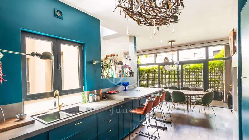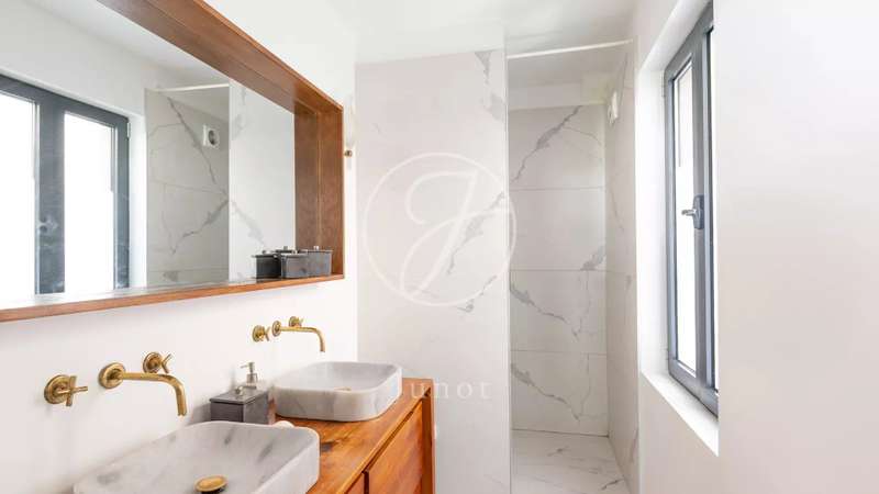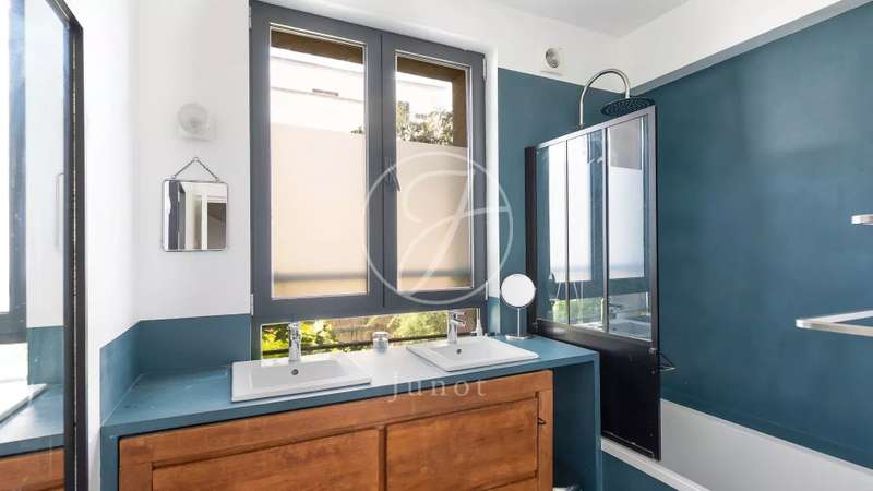 Situated in a quiet cul-de-sac, this charming four-bedroom, three-storey family home will win you over with its spaciousness, luminosity and features. Completely renovated in 2018, it is organized as follows: On the first floor, a welcoming entrance via a small garden, a two-room apartment with a private entrance (ideal for a professional or an au pair) includes a shower room, a TV lounge with patio, a laundry room with access to the cellar and independent toilets. The second floor features three bedrooms, including a master suite with bathroom and dressing room, separate shower room and separate toilet. The second floor features a spacious, bright living room with fireplace and high ceilings, an open-plan kitchen opening onto a sunny dining terrace, and a separate toilet. And finally, on the third floor, a lounge-office area and a large bedroom with shower room and toilet, all opening onto a magnificent 34,28sqm terrace, ideal for enjoying the sun and summer evenings. This house will seduce you with its brightness and sunshine. It is distributed by a central staircase, offering an ideal living environment for a family looking for comfort, calm and proximity to schools and transport. A rare property combining charm, functionality and privileged outdoor spaces.