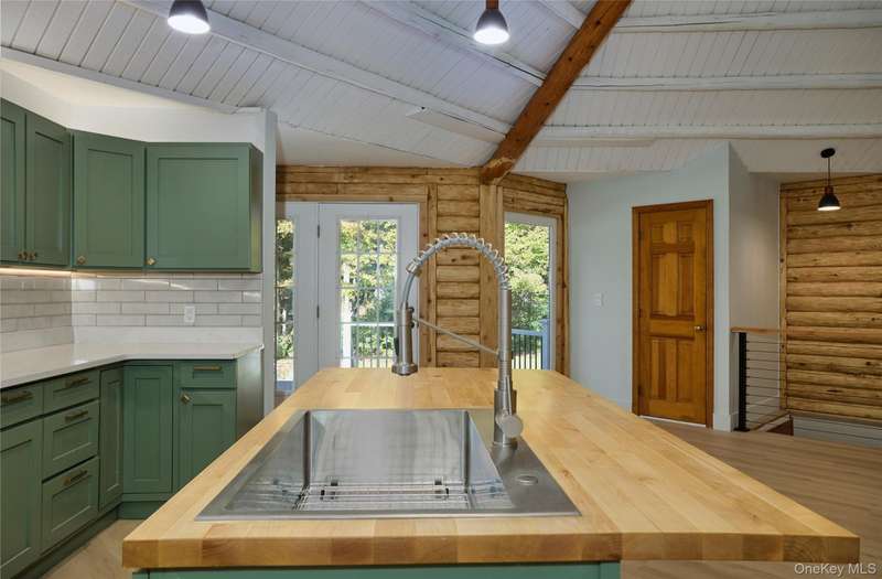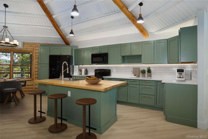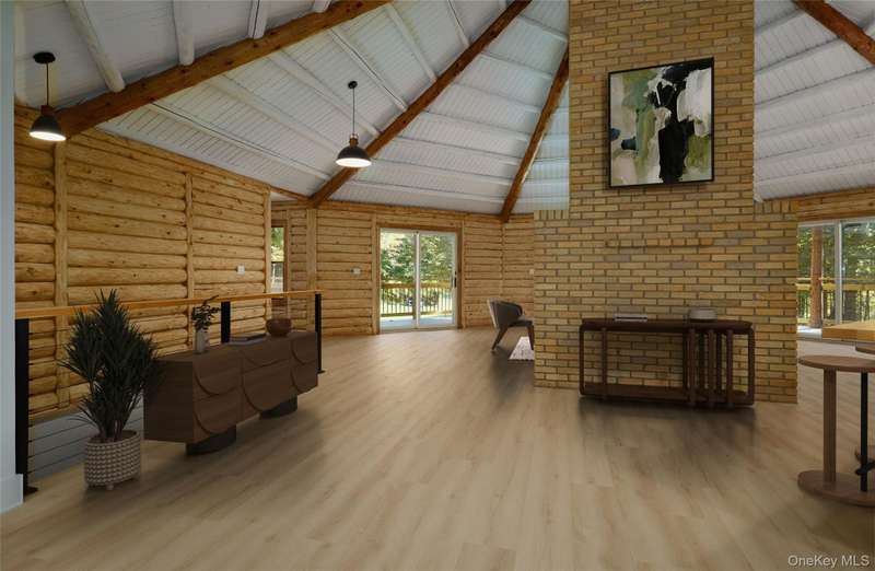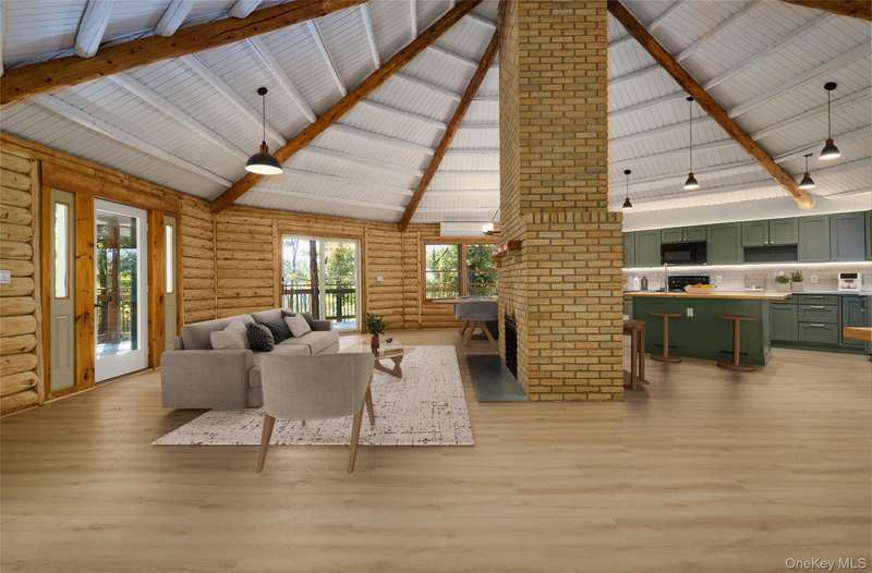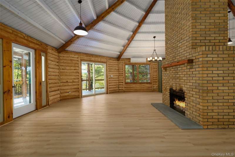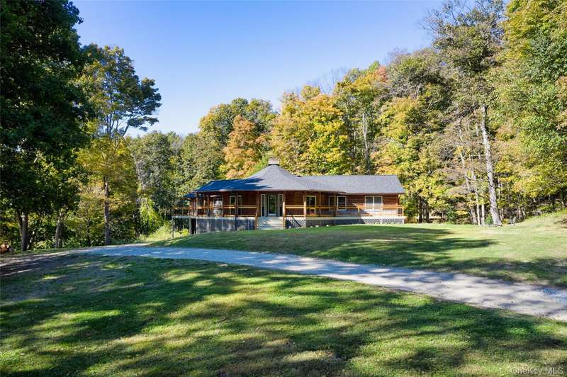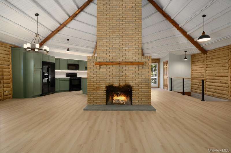 Millbrook Modern Log Home on Nearly 3.5 Private AcresTucked away on rolling, private property, this bright and airy genuine log home has been completely reimagined and restored from top to bottominside and out.Step inside to find a floor-to-ceiling wood-burning fireplace, an open-concept layout, and abundant natural light throughout. Every room has been fully renovated, with reinforced structural elements and a thoughtful redesign to enhance flow and functionality.The cooks delight kitchen features new quartz counters, a butcher block island with seating, subway tile backsplash, and shaker-style cabinetry with modern hardware. The kitchen flows in the dining area and large Great Room.The home offers 2.5 beautifully renovated baths, including a primary suite with radiant heated floors, a spacious walk-in closet, and a private main-floor wing. The guest wing includes two additional bedrooms, a full bath, and convenient main-floor laundry.Additional highlights include:Durable LifeProof high-traffic flooring throughout-New ultra high-efficiency Mitsubishi Hyper-Heat HVAC system (heat & A/C) with 5-year warranty-New high-efficiency heat pump water heater-New roof, front porch flooring, stairs, and custom iron railings-New French doors leading to a spacious rear deck overlooking the serene yard and woods-Refinished basement ready for future living space and a large garage-Extensive hardscaping with bluestone patio and firepit-New perennial landscaping, new septic tank and lines (5-year warranty). Relax on the wraparound covered front porch or gather around the stone patio under the stars. Every inch of this home has been thoughtfully restored, freshly painted and stained inside and out, so you can simply unpack and move in.Perfectly situated just minutes from the enchanting Village of Millbrook, with easy access to the Taconic State Parkway and Route 82. This private retreat is ideally situated to enjoy all the Hudson Valley has to offervineyards, farm-to-table dining, rail trails, antique shops, and more. Showings by confirmed appointment only. Home is not visible from the road.