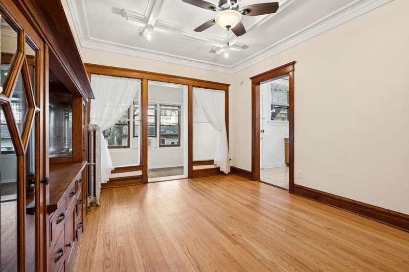 Welcome to this delightful and super spacious elevated 1st floor vintage unit! With approximately 1400 square feet, it feels more like a house than an apartment! Beautiful hardwood floors and tons of natural light can be found throughout. The living room features a decorative fireplace flanked by bookshelves. Off the living room is a fantastic screened in porch. Perfect for gathering with friends or simply sitting and watching the world go by. Down the hall is the impressive dining room with its gorgeous beamed ceiling and a stunning built-in hutch with glass doors. Off the dining room is a delightful bonus area...use it how you will! The kitchen has been updated with maple cabinets, quartz counters, and a new stove and microwave. Two bedrooms are nicely sized and easily fit either a queen or king sized bed. The third bedroom is a bit smaller but plenty of room for a twin bed and dresser; also makes a great home office. All bedrooms have good closet space. The bath has recently had a refresh and is quite charming. Venture outside and you will find a brand new and large back deck, a lovely shaded backyard, and a private 1-car garage space (included in the rent). A large storage space, room for bikes, and coin laundry in the basement can be accessed via an interior stairway. Located just two blocks from all of the amazing things Downtown Oak Park has to offer! Fantastic shopping, dining, parks, entertainment, transportation, and so much more! No pets are preferred but owners will consider a cat or small dog. One year lease and available now! This place has it all! Apply now and say Welcome Home to 323 Wisconsin Avenue!