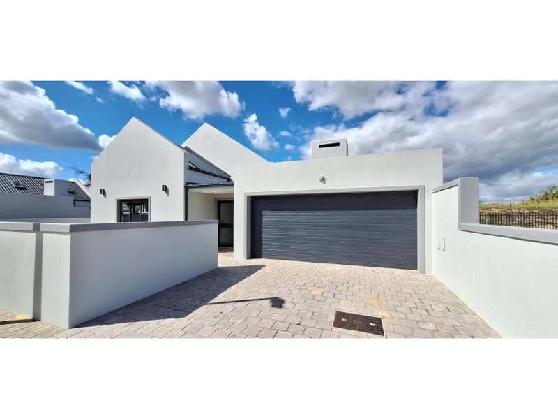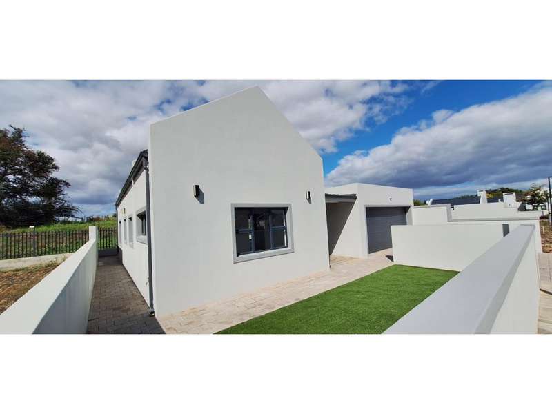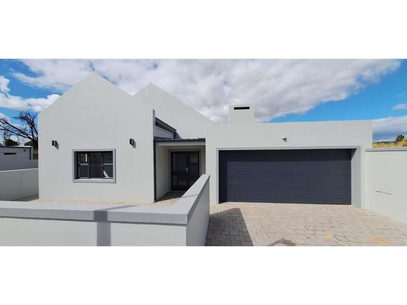 Welcome to Mountain View Village ?Çö aptly named for its breathtaking views of the majestic Langeberg Mountain Range. Ideally located near the heart of town, this sought-after estate is rapidly growing in popularity. This newly built home features soaring double-volume ceilings and an inviting open-plan layout. The main lounge flows seamlessly into a modern kitchen fitted with built-in cupboards and a gas stove. A second lounge or dining area extends from the kitchen and includes a built-in braai, creating the perfect space for entertaining family and friends. The home offers two well-sized bedrooms, both with built-in closets. The main bedroom includes a private en-suite bathroom, adding an extra layer of comfort and convenience. A spacious, automated double garage provides ample storage with additional built-in cupboards and room for laundry appliances. Experience complex living in a home that combines stylish design, practical features, and stunning mountain views.