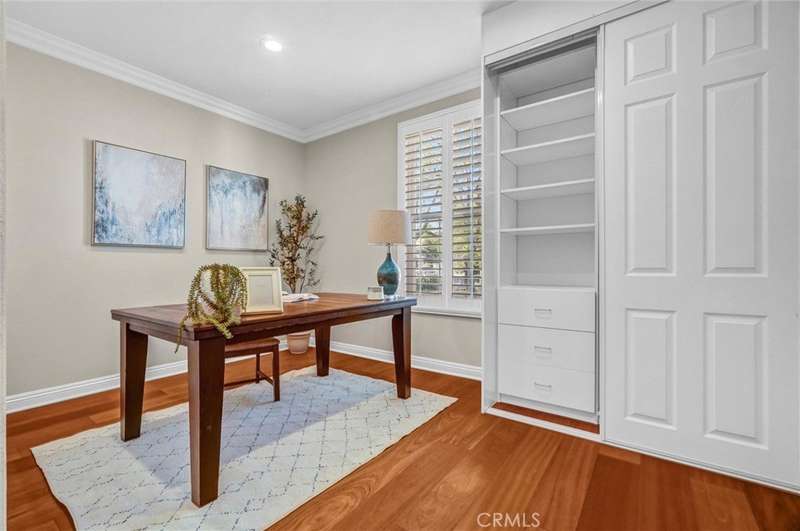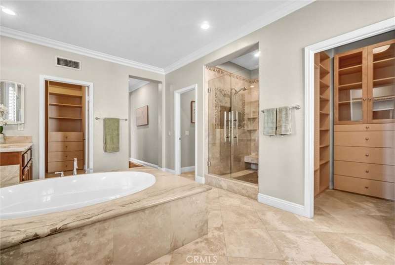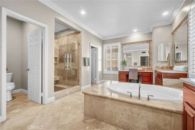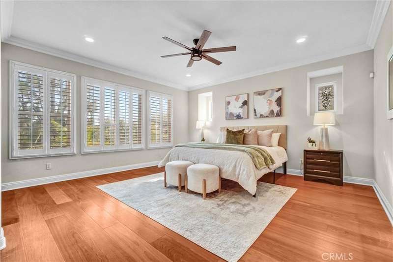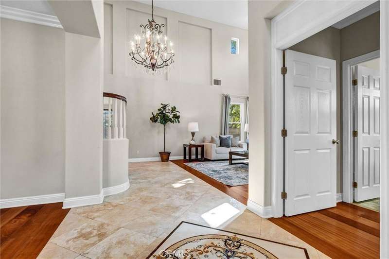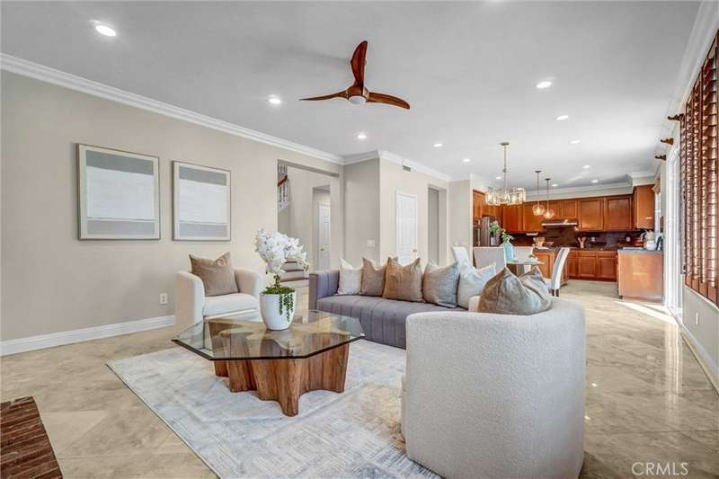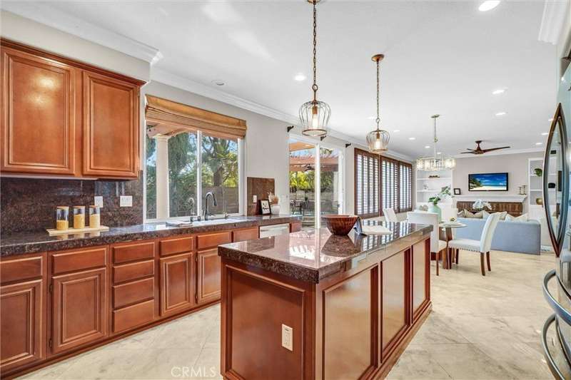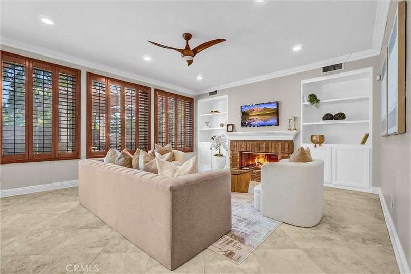 Welcome to Gallery Plan 1 – A Stunning Home in the Prestigious Parkhurst Community of Fullerton! Step into this beautifully updated 3,337 sq ft residence, perfectly located within one of Fullerton’s most sought-after gated neighborhoods. This light-filled, open-concept floor plan offers timeless elegance and comfort throughout. From the moment you enter, you’ll be impressed by the grand foyer with soaring vaulted ceilings that flow seamlessly into the formal living and dining areas. Travertine tile flooring enhances the entryway, kitchen, and family room, adding a touch of luxury and durability. The chef’s kitchen is a true centerpiece – complete with stainless steel appliances, granite countertops, a large center island, a butler’s pantry, and classic plantation shutters. Crown molding throughout adds a refined finish. Just off the kitchen, the spacious family room offers the perfect space to gather and relax. Downstairs, you’ll find a private bedroom with a full bath and walk-in shower – ideal for guests or multi-generational living. Upstairs, rich cherry hardwood floors lead you to three generously sized bedrooms, including a luxurious primary suite featuring two walk-in closets and a spa-inspired ensuite with marble countertops and natural stone finishes. A versatile loft space currently serves as a home office but could easily be converted into a 5th bedroom. The secondary upstairs bath features updated granite counters, a new shower, and upgraded flooring. Step outside to your private backyard retreat, thoughtfully designed for outdoor living and entertaining. Enjoy a gazebo and an outdoor kitchen featuring granite countertops, built-in BBQ, side burners and a sink, along with multiple seating areas enhanced by pavers and a charming pergola - perfect for relaxing or hosting guests in style. This home is also equipped with Solar Panels- a great energy-efficient upgrade. Residents of Parkhurst enjoy resort-style amenities, including three sparkling pools, two relaxing spas, tennis, basketball, and volleyball courts, a clubhouse, and scenic walking trails. Located just minutes from top-rated shopping, dining, and award-winning schools – including the highly acclaimed Golden Elementary with its distinguished GATE program. This is more than a home – it’s a lifestyle. Don’t miss your chance to live in one of North Orange County’s premier communities!