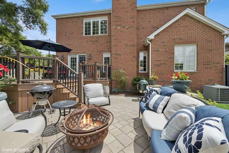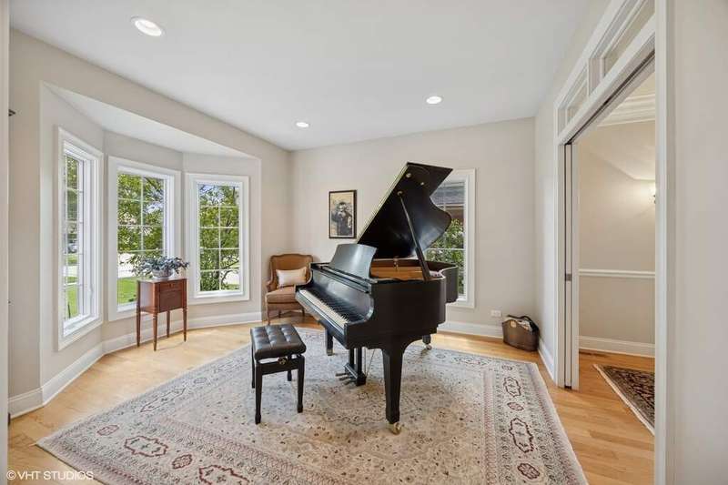 Striking all brick home built in 2004, ideally situated in the highly sought-after LaGrange Country Club area. Boasting timeless curb appeal, situated on an expansive 75-foot-wide lot and features an attached three-car garage, creating an impressive exterior presence. Impeccably maintained, enhanced by new roof and AC unit, offering peace of mind and valuable long-term benefits. Welcoming two-story foyer highlights a grand staircase and captivating views of the second-floor wraparound landing, offering architectural elegance from the moment you enter. The front living room flows seamlessly into the spacious dining room, framed by oversized doorways with distinctive transom windows that add charm. The modern kitchen, equipped with high-end appliances, a central island and casual dining area, opens to a warm family room overlooking the expansive outdoor porch-perfect for everyday living and entertaining. The first floor also includes a generously sized home office and a highly functional mudroom for convenience and organization. Upstairs, four spacious bedrooms and three full bathrooms include a luxurious primary suite, a private guest suite and a conveniently located laundry room-all with ample closet space. Finished third floor offers versatile space for a recreation room or additional bedroom. Expansive basement, with impressive ceiling height, invites endless customization-ideal for a home theater, fitness center or entertainment zone. The backyard is a private oasis, featuring a spacious porch overlooking a lower blue-stone patio, lush professional landscaping and a full privacy fence for tranquility and seclusion. Combining elegant design, thoughtful functionality and a prime location near top rated schools. This stunning home offers a perfect blend of comfort and luxury.