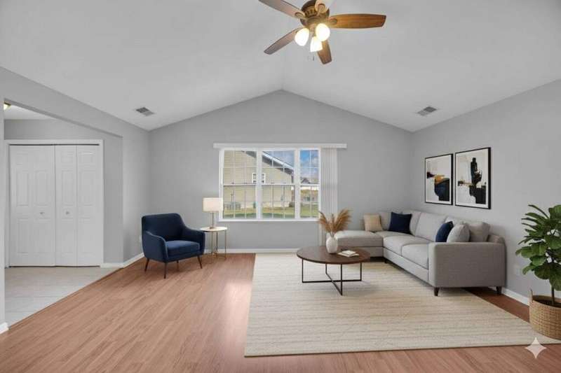 Beautifully maintained and move-in ready 2 bedroom, 2 bathroom 1/2 duplex. It features no HOA and low taxes. This open floor plan with high ceilings provides a clean and contemporary feel. This turn-key property is perfect for anyone seeking low-maintenance living without sacrificing style or comfort. It includes a large living area, generous bedrooms, and an attached garage on a convenient single-level floor plan. Whether you're a first-time buyer, downsizer, or investor, this property checks all the boxes. It is a great location close to shopping, restaurants, and healthcare, offering convenience with easy access to I-65 and Route 30, making commuting and everyday errands easy.