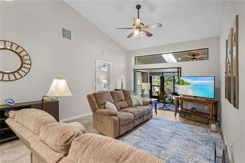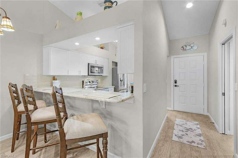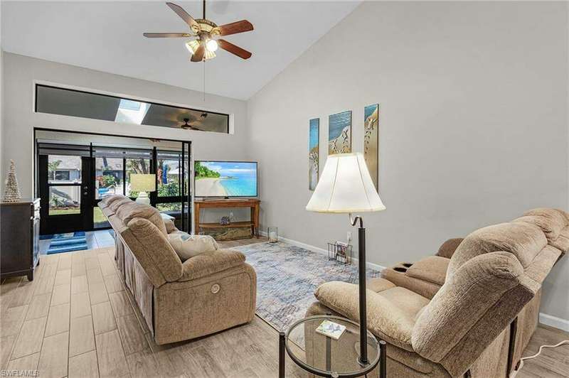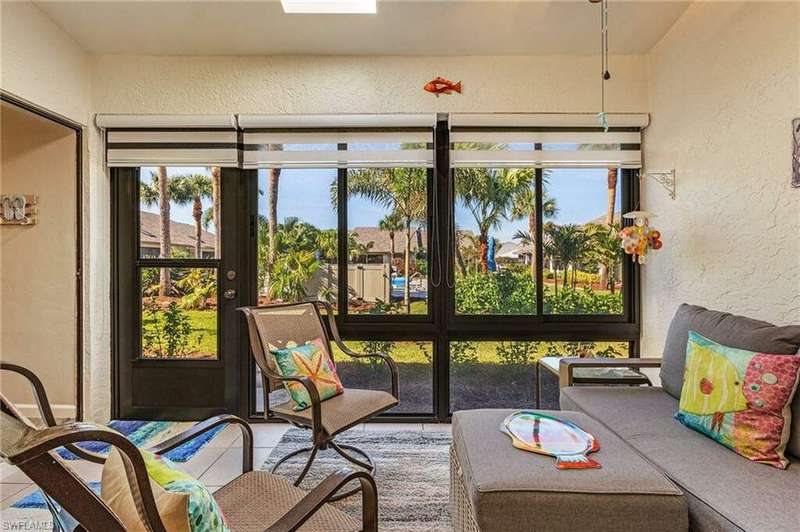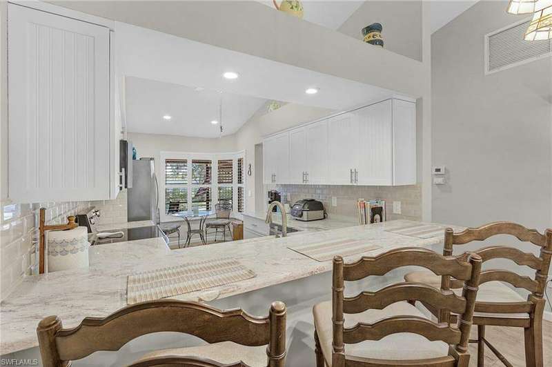 Welcome to your new Attached Villa home in South Fort Myers, where luxury meets leisure in this gated community of Cinnamon Cove. This gorgeous villa has stunning views of the outdoor spaces featuring a pool, lush green landscaping, and dual screened lanai's with the rear lanai able to be open to the fresh air or close the sliding windows and make it under air extra space so you can pick up that good book and just relax. Inside, the residence you'll find 2 bedrooms, 2 bathrooms, all stainless appliances(less than 2 years old), laundry in residence for ultimate convenience and a new larger water heater. This beautifully updated and remodeled home offers granite counters in kitchen and bath, all custom cabinets by Cornerstone and Plantation shutters that gives the perfect blend of elegance and comfort. The large clubhouse offers an array of social activities, fitness center, billiards, tennis, pickleball, and bocce ball. Revel in the proximity to popular beaches like Bunche Beach, Fort Myers Beach, and Sanibel Island. Enjoy convenient access to shopping, dining, hospitals, and the international airport, all just minutes away. Embrace the essence of comfortable living as you create your own story in this very active community.