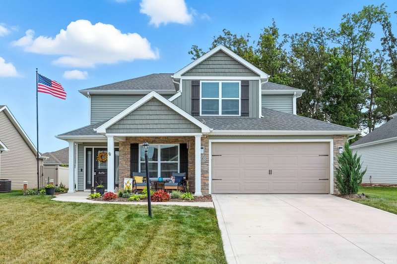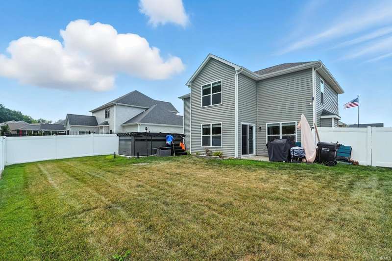 Updated photos! Welcome to 240 Edenbridge Blvd, a beautifully maintained 2-story home offering comfort, functionality, and style in sought-after Edenbridge neighborhood and NACS schools. Built just 5 years ago, with transferrable warranties, this home feels fresh and modern while providing the space and features today’s buyers are looking for. Step inside to an inviting open-concept layout that seamlessly connects the living, dining, and kitchen areas—perfect for entertaining or simply enjoying everyday life, with patio access from the dining area. *Note the yard does extend beyond the fence for a sizeable lot. The kitchen comes fully equipped with appliances that remain, ample custom-cabinet space, which are soft closing, and a walk-in pantry with a convenient peninsula for dining or gathering. A walk-in laundry room with countertop keeps chores tucked away and organized, while the den offers flexibility as a home office, playroom, or cozy sitting area to suit your lifestyle. On the main level, there is no shortage of storage - two hall closets, plenty of space under the stairs and more. Upstairs you’ll find four spacious bedrooms and two full bathrooms, including a private primary suite designed for rest and relaxation. Shower doors in the primary were added recently. With generous closet space throughout, you’ll appreciate the abundance of storage this home provides. Outside, enjoy your quiet front porch or retreat to the fenced-in backyard, ideal for kids, pets, or summer barbecues. Situated on a desirable lot, the home also offers extra yard space and a sense of privacy. The two-car attached garage does offer climate control! With 4 bedrooms, 2.5 baths, and thoughtful features throughout, this property combines convenience with modern living. Don’t miss the opportunity to make 240 Edenbridge Blvd your new home!