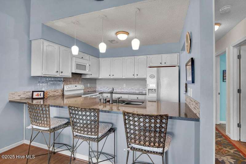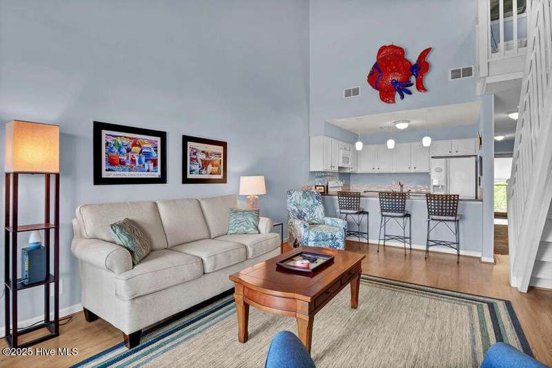Experience coastal living at its finest in this beautifully appointed 1445 sq ft condominium located in the Mariners Wacche community of Ocean Isle Beach, NC. This residence offers stunning views of the Intracoastal Waterway and the lush fairways of Brick Landing Plantation's golf course, providing a serene backdrop for your everyday life. Step inside to discover an open concept living space adorned with luxury vinyl plank flooring, seamlessly connecting the living, dining, and kitchen areas. The kitchen features solid surface countertops and ample cabinetry, perfect for preparing meals and entertaining guests. The living area extends to a three-season porch with Eze-Breeze vinyl windows, where you can relax and enjoy the tranquil waterway views. The primary bedroom offers direct access to the porch and includes an en-suite bathroom with triple vanities a walk-in shower enclosure. Two additional bedrooms share a bathroom, providing comfort and privacy for guests. An additional loft space serves as a versatile area for a home office, hobby room, or extra sleeping quarters, complete with its own bathroom and closet. Residents of Mariners Wacche enjoy exclusive amenities, including a private pool nestled among grand Southern Oak trees, as well as access to the Brick Landing community's larger pool, hot tub, tennis and pickleball courts, and clubhouse. The deep carport area offers exclusive parking for upper-floor units, adding to the convenience. There is also a downstairs storage unit in the carport area. With short-term rentals not permitted, the community ensures a peaceful environment, free from the hustle and bustle of weekly vacationers. Rentals are allowed but require a minimum stay of 20 days. Whether you're seeking a permanent residence or a seasonal retreat, this condominium offers a lifestyle of comfort and natural beauty. Don't miss the opportunity to make this coastal haven your own.