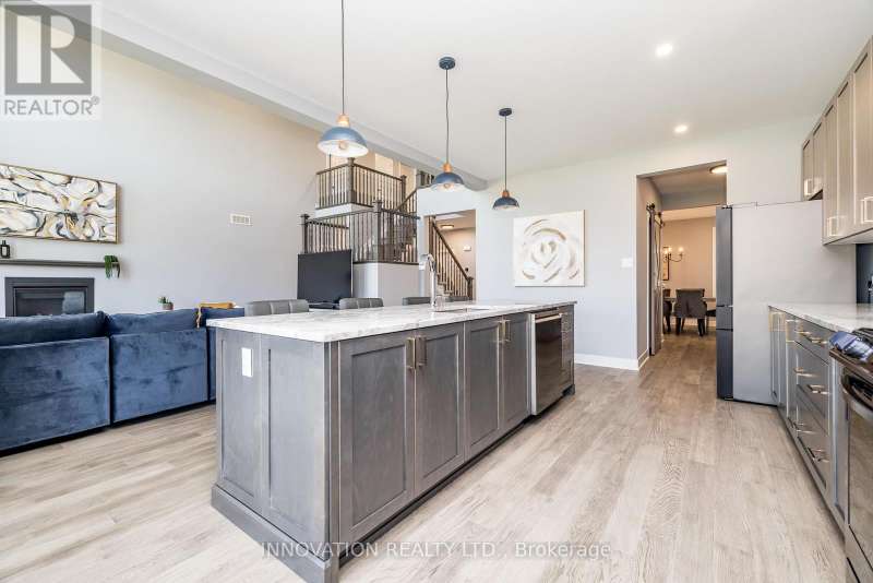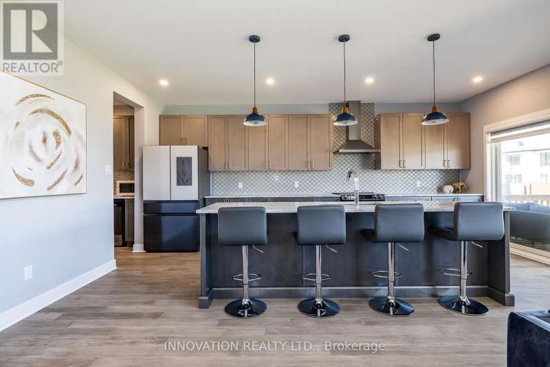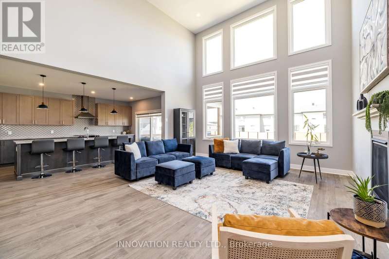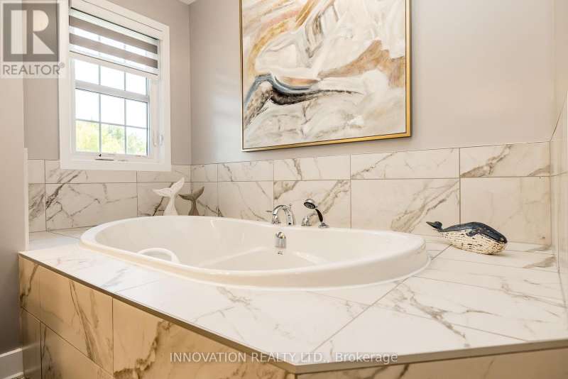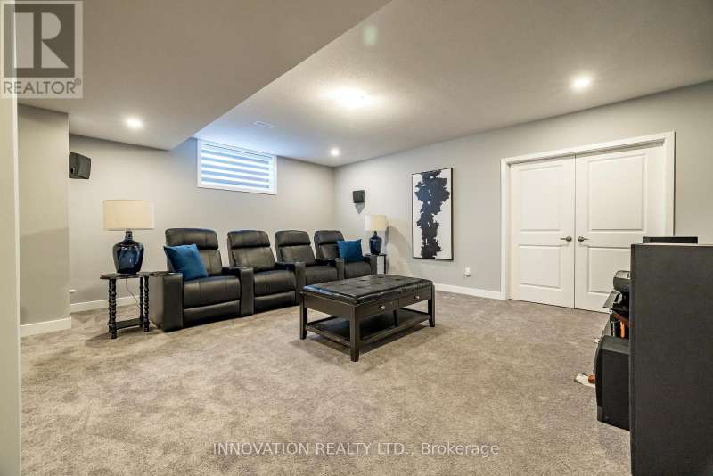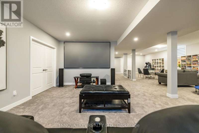 Welcome to this 4383 sqft, 2023-built detached home in Diamondview Estates, one of Carps most sought-after neighborhoods. Surrounded by mature trees with easy highway access, this stunning home offers luxury, space, and functionality, ideal for multi-generational living and entertaining. High-end finishes and thoughtful upgrades are found throughout. Soaring ceilings & an open-concept layout highlight the main level. The show-stopping chefs kitchen features top-tier appliances, a large island, and ample prep space. A full Butlers pantry with walk-in food storage, sink, and bar area (including dual-zone wine fridge) adds function and style. 8-ft patio doors open to a covered deck overlooking the expansive yard, perfect for year-round grilling and gatherings. The main floor includes a generous dining area, dedicated office, and a 5th bdrm/in-law suite with private ensuite with patio doors and Juliet balcony, offering comfort and privacy for extended family or guests. Upstairs, you'll find 3 generously sized bedrooms, each with its own ensuite. The primary suite is a luxurious retreat, complete with a spa-like bathroom featuring a 6-foot soaker tub, perfect for unwinding. One of the ensuites has a clever design that can open to the hallway, allowing it to double as a shared guest bath while still offering private access from the bedroom. A large 4th bedroom/bonus room provides extra versatility. The fully finished lower level offers 1,000 sq ft of additional living space with high ceilings ideal for a gym, rec room, or play area. A large unfinished area provides extra storage, workshop space, or future expansion. Enjoy a true cinematic experience in the included 5.1 Surround Sound 4K Laser Home Theatre, complete with 120 screen and 4 Valencia theatre-style chairs with motorized head/footrests. From its expansive indoor layout to its beautifully integrated outdoor space, this one-of-a-kind home is built for those who value space, style, and comfort in a prime location. (id:6509)
