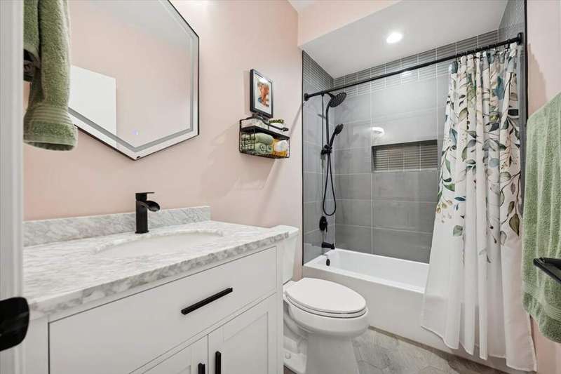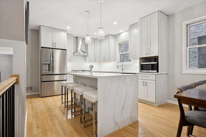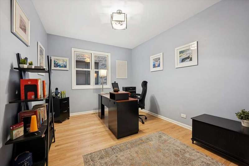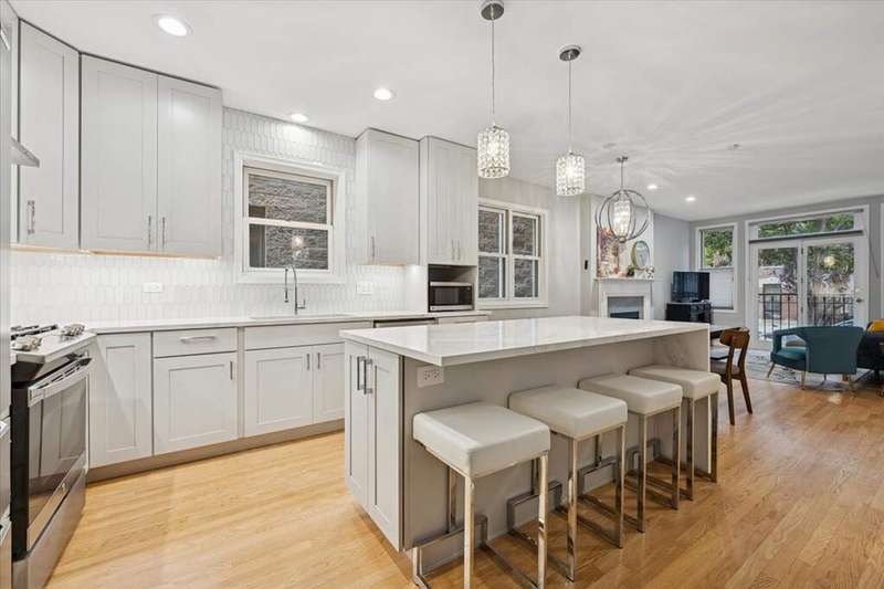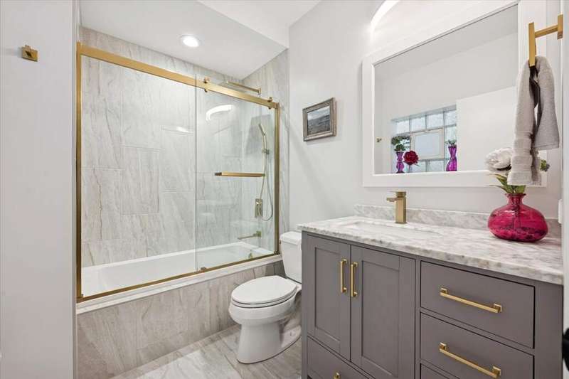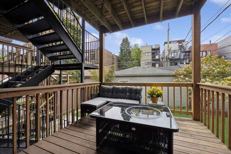Extensively upgraded and updated duplex down, with new bathrooms, kitchen, new hardwood floors in both main floor bedrooms, and more. The first floor consists of a living and dining room with a gas fireplace, a large kitchen with quartz countertops, waterfall island, and organized pantry, two large bedrooms, and two full bathrooms. The hall bath has a walk-in shower, and the ensuite has a shower/tub combo. The rear deck is accessible through both the primary bedroom and hallway. The lower level has a sizable family room with fireplace, two large storage areas, full bath with shower/tub combo, and laundry room with side-by-side washer and dryer, recessed ironing board, and sink. A large bedroom with a walk-in closet rounds out the lower level. One garage space is included in the asking price, and street parking on Marshfield is permit. Marshfield is a tree-lined residential street, but it's only 1.5 blocks to Division Street, with neighborhood favorites like Tortello, Alliance Bakery, Parlor Pizza, Smoke Daddy, Little Victories, and more. A Target is 2 blocks away, Jewel is 4 blocks, and a new Whole Foods is slated to open at Division and Ashland, making running errands on foot a breeze.The Division Blue Line stop is a 5 minute walk, as well as easy access to 90/94. Coveted Pritzker Elementary school district.