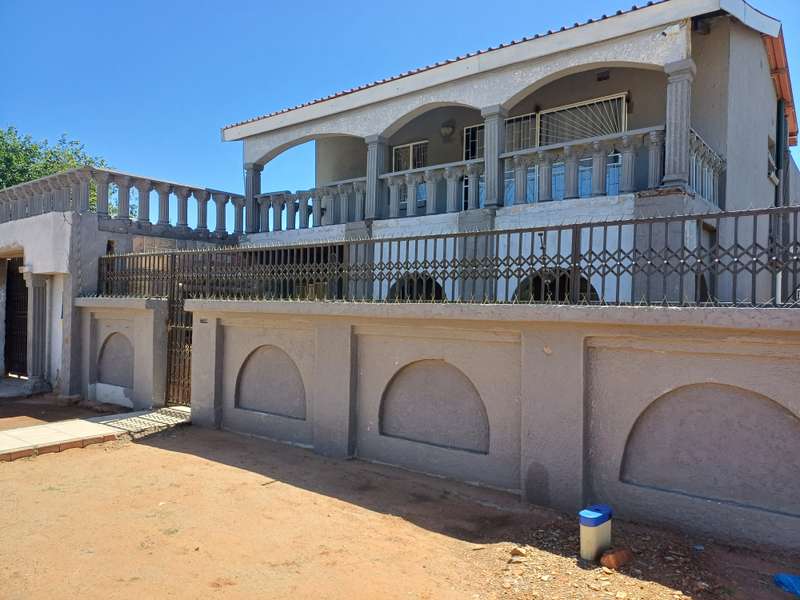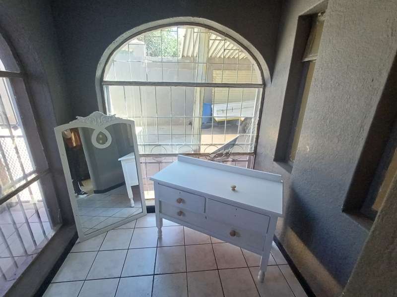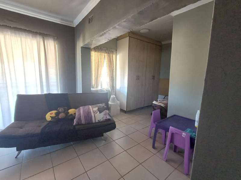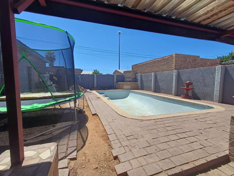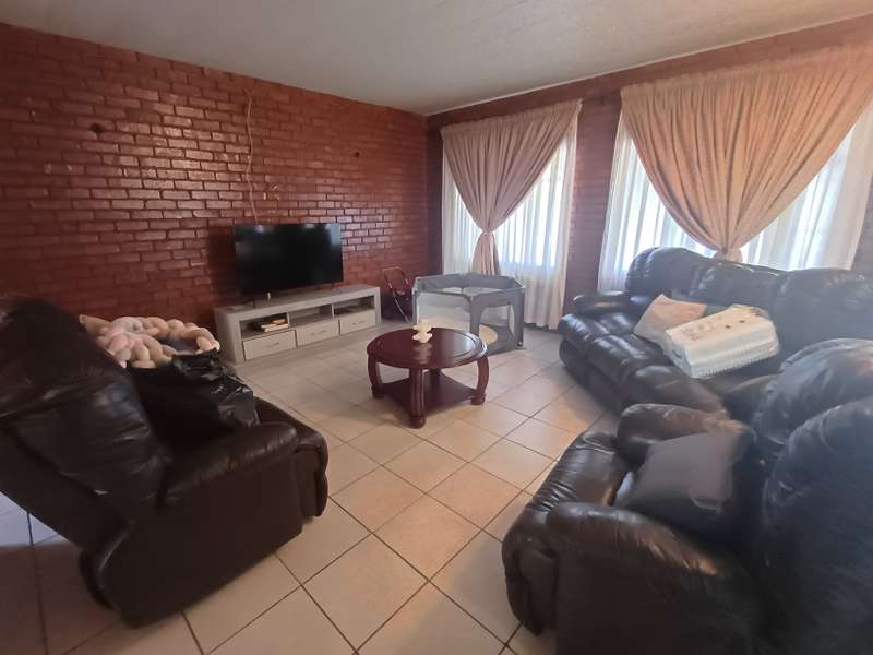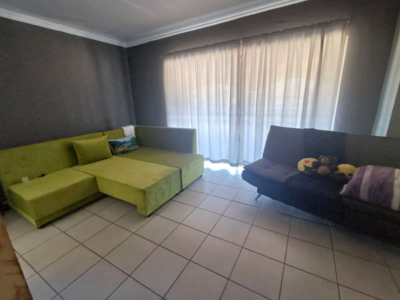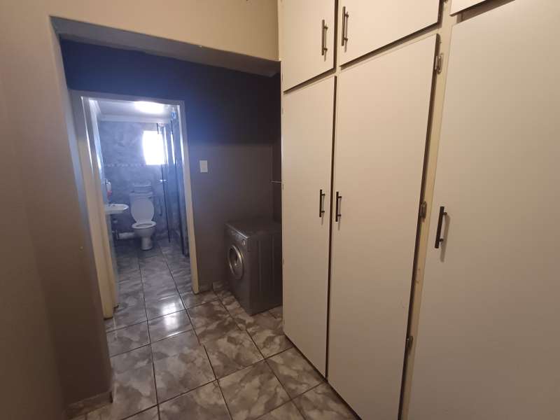 This impressive double-story residence in Roodepan combines functionality and style across its expansive layout. The main house features three spacious bedrooms, each fitted with built-in cupboards for convenient storage. It includes two well-placed bathrooms, designed to serve both levels comfortably, as well as a dedicated linen cupboard section to keep household essentials organized. The ground floor offers a welcoming lounge, a dining room ideal for family meals, a fully-equipped kitchen, and a study—perfect for remote work or added living space. The layout is thoughtfully separated across two levels: the bottom section includes two comfortable bedrooms and one bathroom, creating a practical living arrangement for family members. The top level hosts a guest bedroom with an en-suite bathroom and opens onto a private balcony, providing charm and seclusion for visitors or family. Outdoors, an enclosed carport accommodates up to four vehicles and is secured by a motorized gate for added convenience. The property also features an entertainment area and a pool, ideal for gatherings or quiet relaxation. An added bonus is the two-bedroom flat with an open-plan lounge, kitchen, and bathroom, generating a rental income of R4,000 per month. This self-contained flat offers a smart investment opportunity or additional space for extended family accommodation.