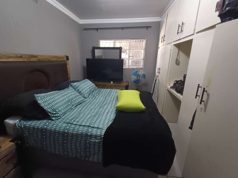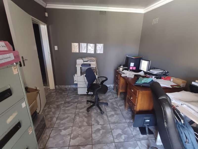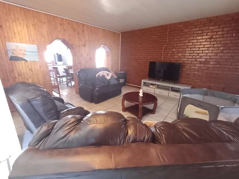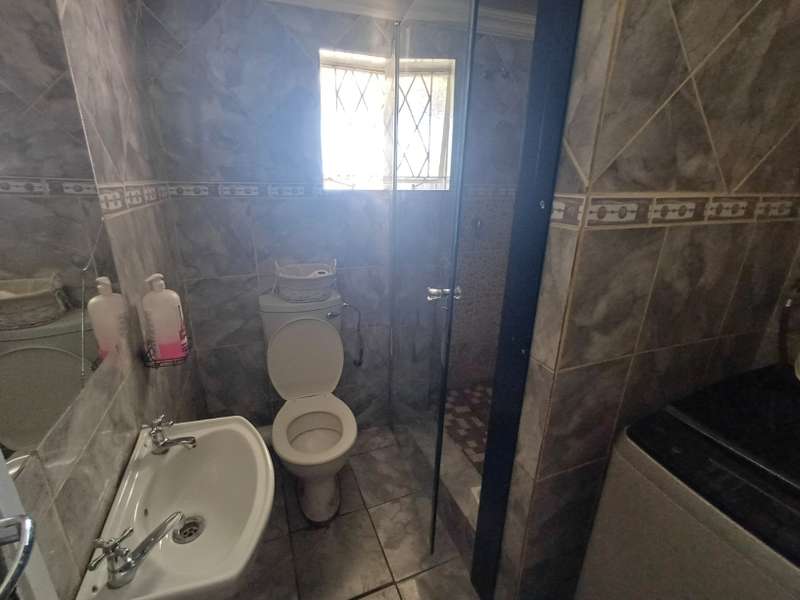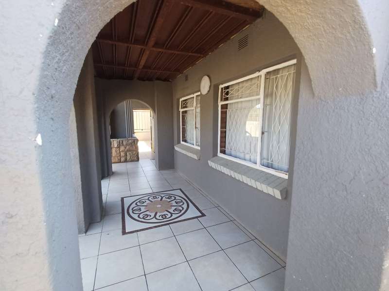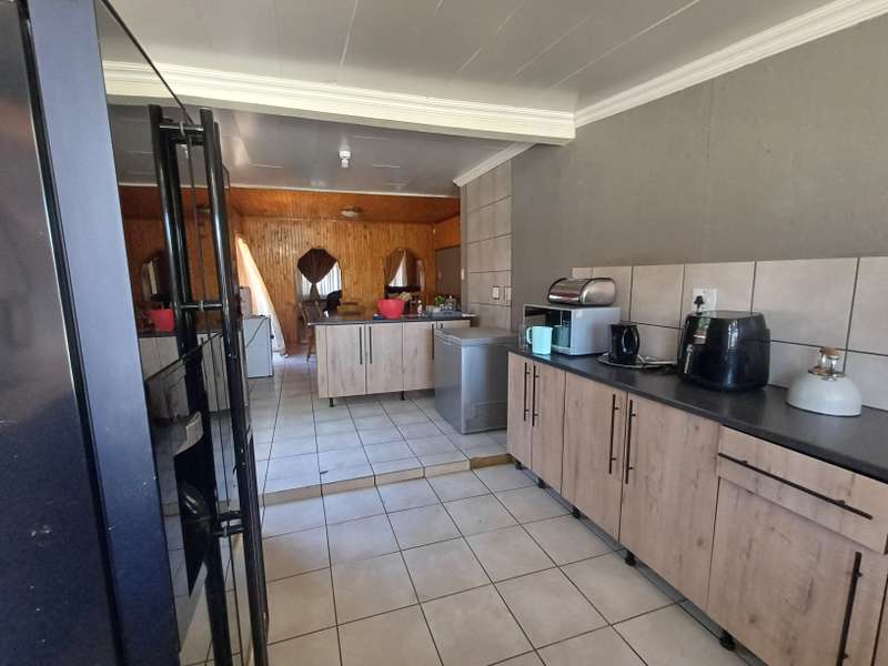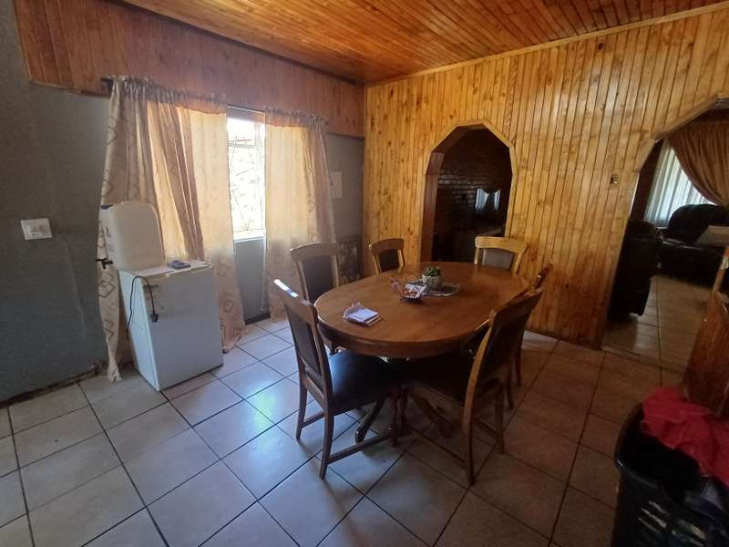 This impressive double-story residence in Roodepan combines functionality and style across its expansive layout. The main house features three spacious bedrooms, each fitted with built-in cupboards for convenient storage. It includes two well-placed bathrooms, designed to serve both levels comfortably, as well as a dedicated linen cupboard section to keep household essentials organized. The ground floor offers a welcoming lounge, a dining room ideal for family meals, a fully-equipped kitchen, and a study—perfect for remote work or added living space. The layout is thoughtfully separated across two levels: the bottom section includes two comfortable bedrooms and one bathroom, creating a practical living arrangement for family members. The top level hosts a guest bedroom with an en-suite bathroom and opens onto a private balcony, providing charm and seclusion for visitors or family. Outdoors, an enclosed carport accommodates up to four vehicles and is secured by a motorized gate for added convenience. The property also features an entertainment area and a pool, ideal for gatherings or quiet relaxation. An added bonus is the two-bedroom flat with an open-plan lounge, kitchen, and bathroom, generating a rental income of R4,000 per month. This self-contained flat offers a smart investment opportunity or additional space for extended family accommodation.