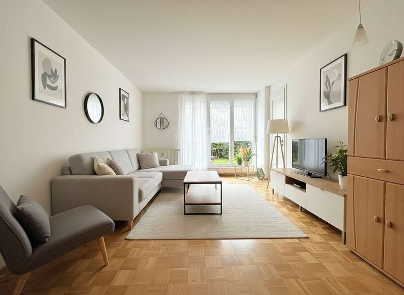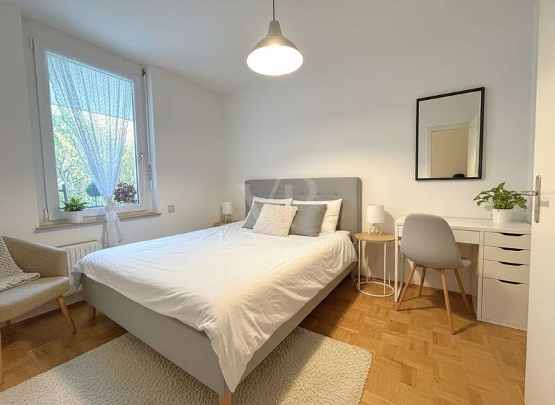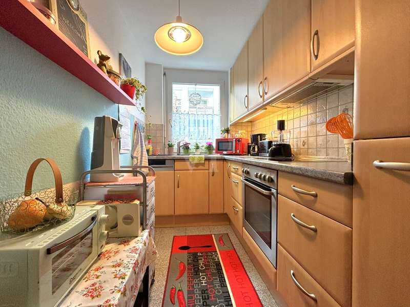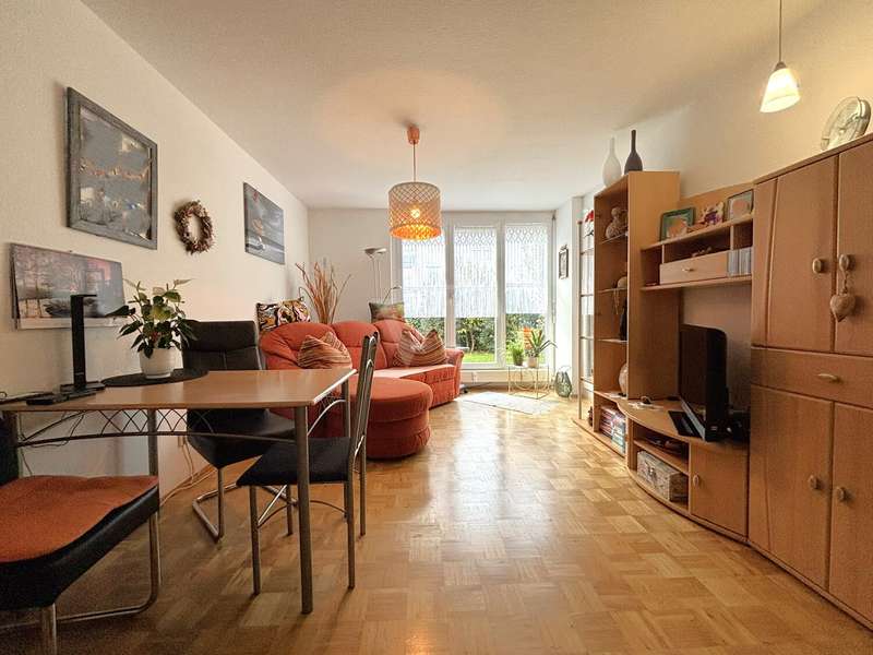 Welcome to this well-kept garden apartment built in 2000. With a living space of around 46 m², the property offers a well thought-out and well-designed floor plan that appeals to both singles and couples. The apartment is located in a quiet yet well-connected residential area, so you can enjoy short distances to all daily amenities as well as excellent transport links. The well-lit living room with parquet flooring is generously proportioned. Here you can easily set up a cozy living area and a small dining area. Directly adjacent is the kitchen with a beautiful view of the garden. The fitted kitchen has all the necessary appliances and offers plenty of space. The bedroom is also a nice size and offers enough space for your bed and a closet. Parquet flooring has also been laid here. The bathroom is equipped with a shower, a washbasin, a towel radiator and a WC. There is also an additional washing machine connection in the bathroom. The white tiles in the wet area ensure a timeless and neat look. The highlight of the apartment is the large south-facing garden with a beautiful, covered terrace. Here you can enjoy hours of sunshine or spend cozy barbecue evenings with your friends and family. The entire apartment is characterized by its well-kept condition. White wooden windows with thermal insulation glazing provide good insulation and allow plenty of daylight into the rooms. The quality of the fittings is good and forms a solid basis for individual design options. Heating is provided by gas central heating. The apartment also has its own cellar compartment with sufficient storage space for household utensils or seasonal items. Thanks to the shared bicycle cellar, you can also remain flexible in everyday life. The apartment building impresses with its well-kept grounds and a janitor service that regularly ensures cleanliness and tidiness. The neighborhood is friendly and the surrounding area is characterized by green spaces and a good infrastructure. Shopping facilities, doctors and public transport are all within easy reach. ** The apartment has been let since March 2023 and is also suitable as a stable investment ** We look forward to your inquiry.