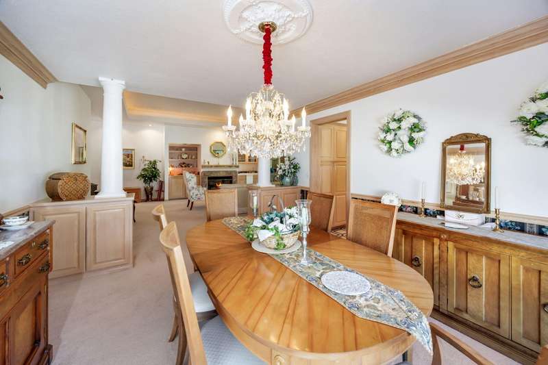 Mike Pagnini built home w/2633 SQ FT in a sought after Rogue Valley Country Club neighborhood overlooking the 10th Fairway! Lg kitchen w/island cooking, bay window, breakfast room, lg great rm w/coffered lighted ceilings, gas log fireplace, built in w/wet bar and ice maker. 2 primary suites + den/office or could be a 3rd bedroom w/built ins and bay window. Lg primary suite w/sitting area, walk in closet, dbl sinks, jetted tub, lg shower, skylight and extra storage. Nice covered patio overlooking the Golf Course w/an electric awning. Great upscale neighbor w/ common park area. Seller is offering a $5000 credit to Buyer, if needed, to add a wall and double doors for 3rd bedroom at Closing.