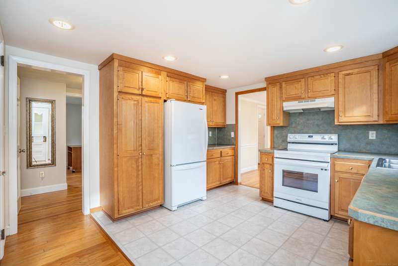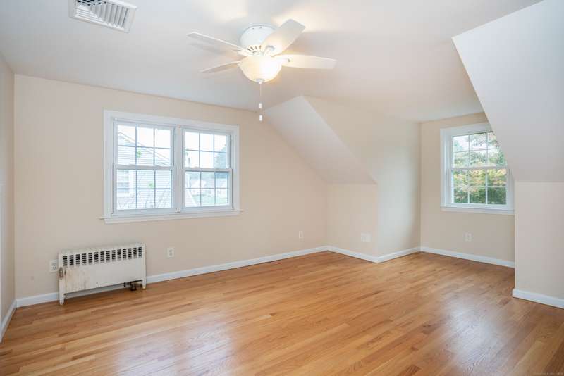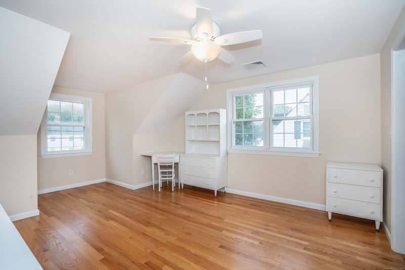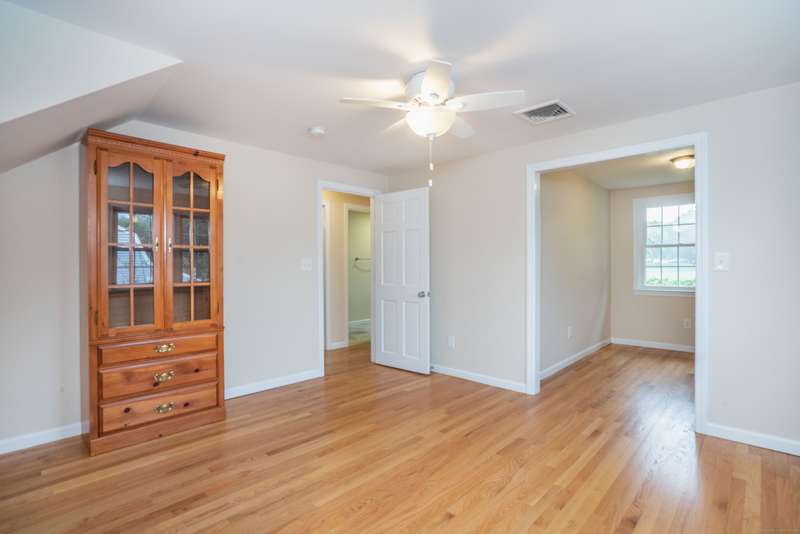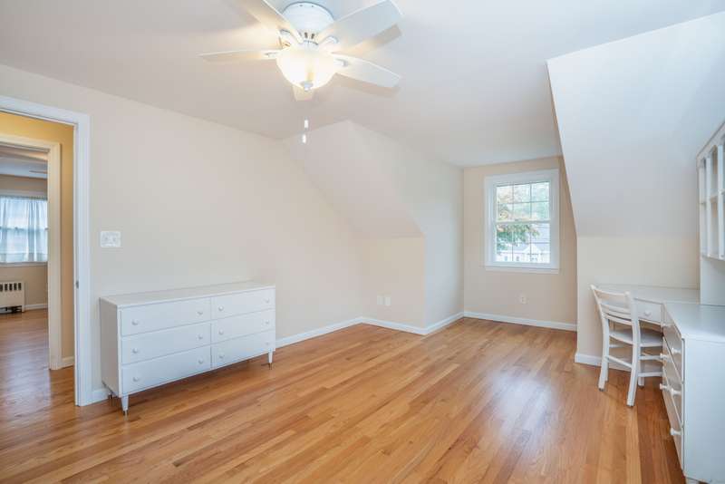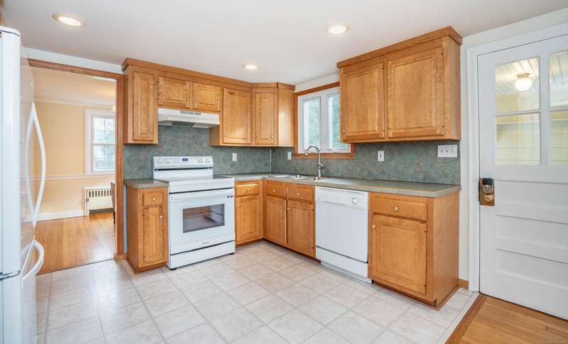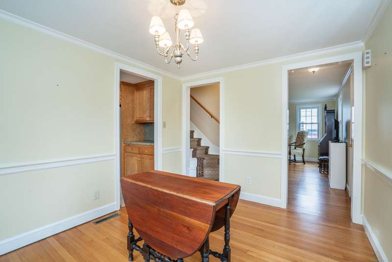 Charming 3-Bedroom Home with Modern Updates & Classic Character! Welcome to this beautifully updated 3-bedroom, 2-full-bath home, perfectly situated on a cul-de-sac just minutes from the center of town & all its amenities. From the moment you arrive, you'll appreciate the curb appeal, starting with a double-wide driveway featuring pavers. Step inside to discover gleaming hardwood floors that flow throughout the home. The first floor offers a spacious primary bedroom, a fully updated bathroom with a walk-in shower, & a stylish kitchen with birch cabinets & a cozy dining area for casual meals. Enjoy the convenience of first-floor laundry & a charming formal dining room complete with built-ins & a large picture window that welcomes in the morning sunlight. The formal living room is equally inviting, featuring a classic wood-burning fireplace with a traditional mantel-perfect for cozy evenings at home. Upstairs, two full dormers expand the space, creating two oversized bedrooms, each with