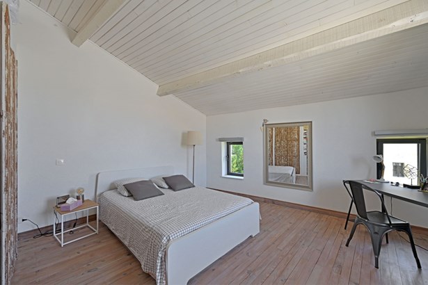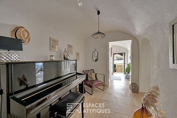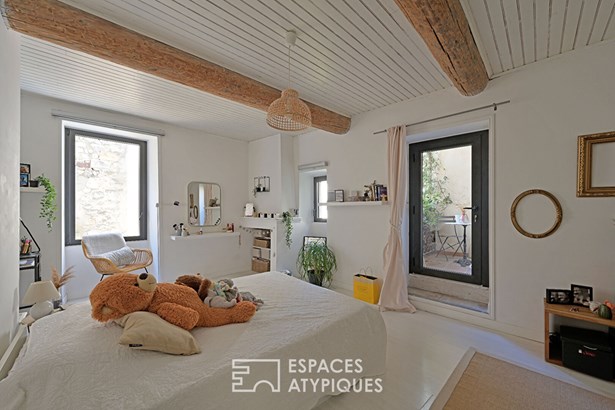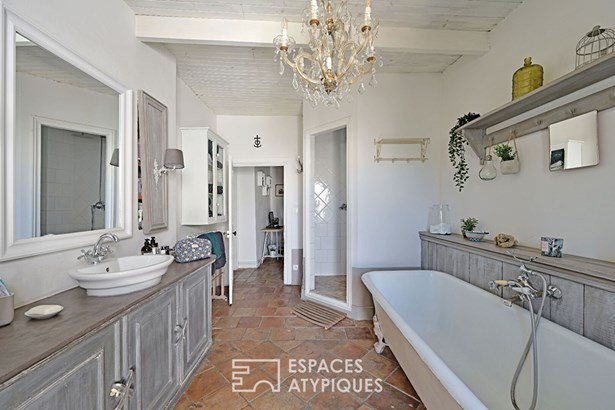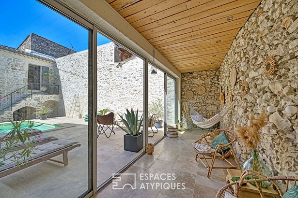 Outside, the charm is just as effective. An intimate interior courtyard, sheltered from view, accommodates a cozy veranda as well as a counter-current swimming pool (4x2m), a real wellness asset.