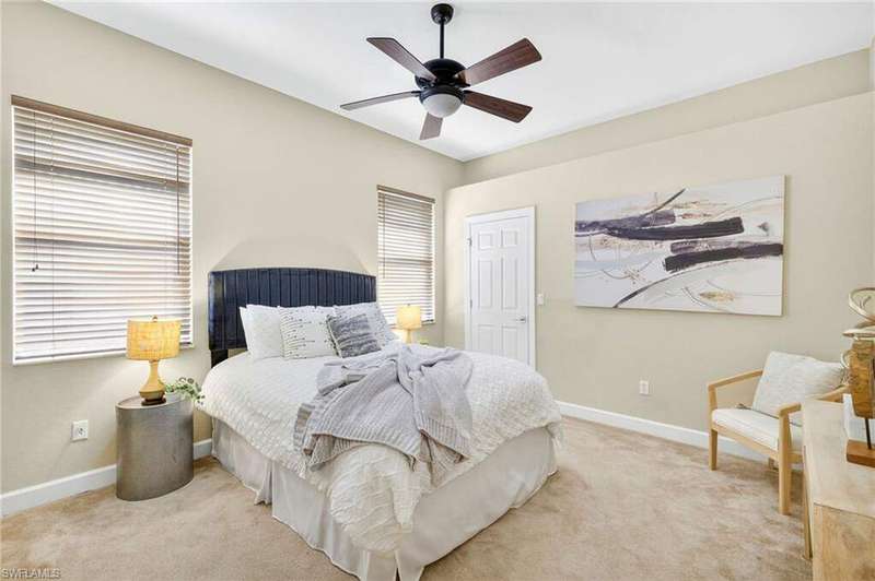 Welcome to your dream home located in the sought-after gated community of Mustang Island at Lely Resort in beautiful Naples! This stunning property boasts picturesque golf course views that can be enjoyed from the expansive screened-in lanai complete with a heated pool and spa, perfect for entertaining or relaxing in style. Inside, you'll find a culinary haven with brand new stainless steel kitchen appliances, complemented by exquisite new quartz countertops and backsplash. The primary bedroom offers plush comfort with fresh new carpet. Recent upgrades include a new tile roof in 2024 and fresh exterior paint. As a Mustang Island resident, indulge in the Players Club and Spa, a 15-acre tropical paradise offering clubhouse and Tiki Bar dining and entertainment, expansive fitness center with trainers and classes, 2 resort style pools, 1 lap pool, 13 tennis courts, 4 pickleball courts and 4 bocce courts. Lely Resort is also home to three golf courses, including one private and two public options. You'll love the convenience of being just a short distance from the vibrant shopping and dining scene of 5th Ave, as well as the pristine beaches of Naples and Marco Island. This home is the perfect blend of luxury, comfort, and location, offering you a lifestyle of unparalleled ease and enjoyment. 1 year Home-Tech Silver Plan Home Warranty included. The staged furniture is available for purchase from the Stager.