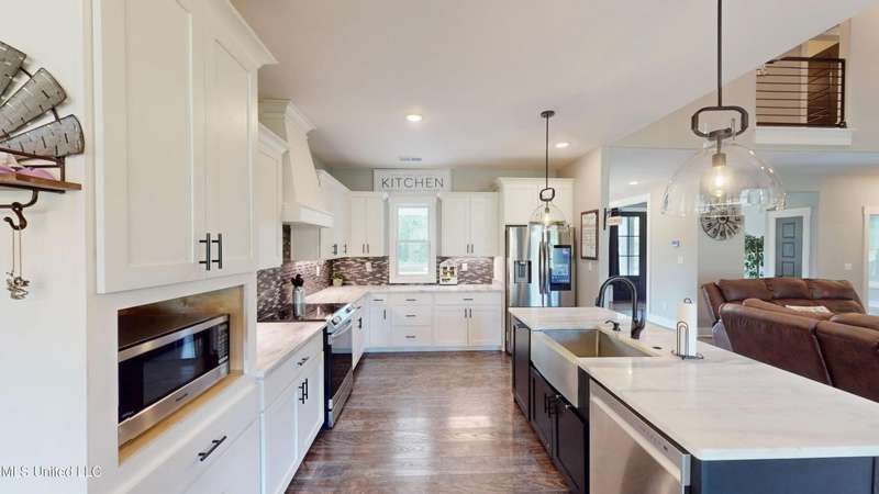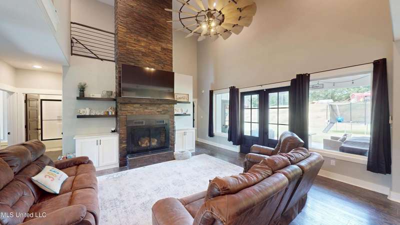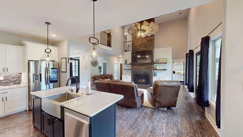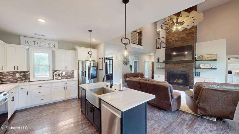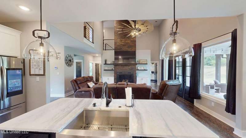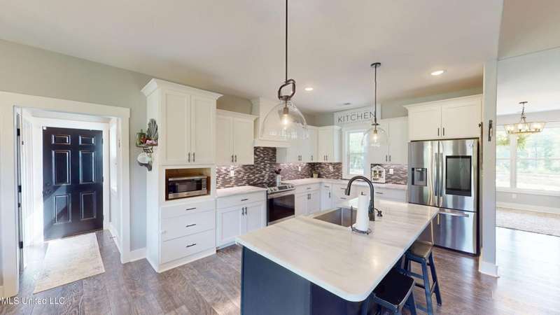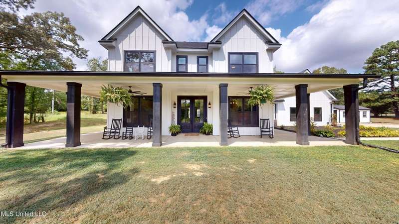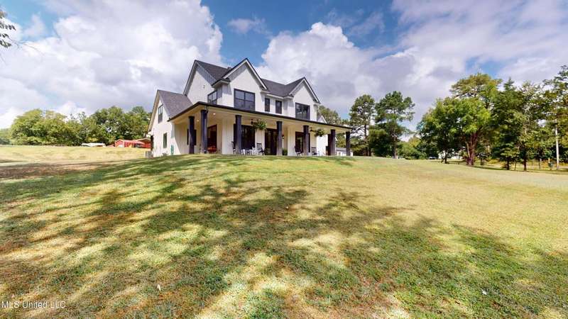 Welcome to your dream farmhouse retreat! This stunning 5-bedroom, 3.5-bathroom custom-built home sits on 4.5 beautiful acres off of HWY 309, offering over 3,100 square feet of thoughtfully designed living space that perfectly blends modern comfort with timeless country charm.Step inside to an open-concept heart of the home, where the gourmet kitchen, dining, and living areas flow seamlessly together. The kitchen is a chef's delight, featuring sleek white cabinetry, a large island, a farm sink, stainless steel appliances, a stylish tiled backsplash, upgraded lighting, and custom cabinets. A beautifully designed pantry and a custom laundry room add both function and flair.The spacious living room boasts vaulted ceilings and a stone fireplace, creating a warm and inviting atmosphere. Large windows flood the home with natural light and views of the surrounding landscape.The primary suite serves as a private retreat, complete with a sliding barn door, spa-like en-suite bathroom, and walk-in closet. Four additional bedrooms provide versatility for guests, a home office, or hobbies, and an additional media room offers even more space to relax or entertain.Outdoors, you'll find a wraparound front porch, a 3-car garage, and a long private concrete driveway, all adding to the home's curb appeal. The expansive lot provides plenty of room for outdoor activities, gardening, or simply soaking in the peace and quiet of the countryside. Multiple outdoor access points, including glass doors from bedrooms and living spaces, make indoor-outdoor living a breeze.With no city taxes, custom finishes throughout, and a prime location, this home truly has it all. Schedule your private showing today and experience the perfect blend of space, style, and serenity.