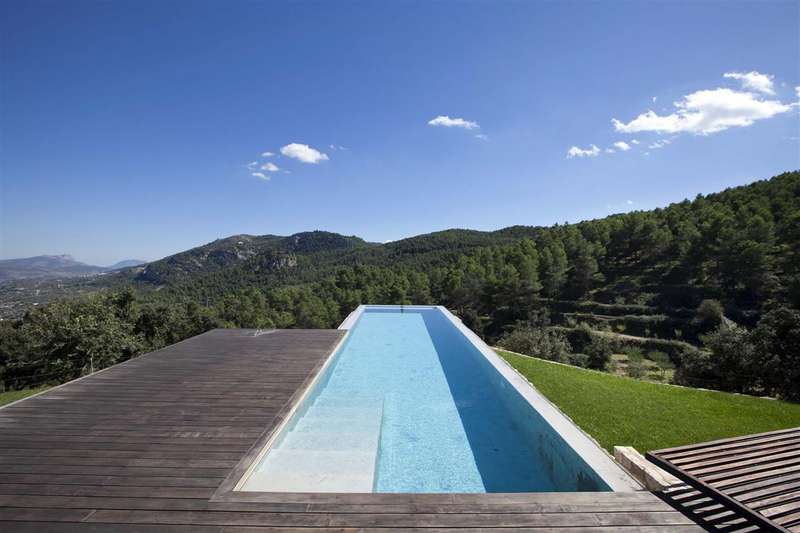 This exclusive property is located next to the municipality of Bocairent in the Valencian Community. Situated in the middle of the Sierra Mariola natural park, this villa sits on a huge 75,000m2 plot on top of a mountain. The house itself covers an area of 350m2 and comprises four bedrooms, three bathrooms, a magnificent living/dining room with double-height ceilings, completed with a large kitchen. The villa combines classicism (characterised by its exterior stonework) with interior modernity to make it truly special. Its unique location provides residents with a peaceful setting, away from the city, but less than 40 minutes from Valencia and the sea. This is a special house in an exceptional location.