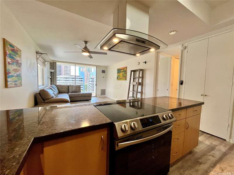 SELLER OFFERING $10,000 CREDIT toward a mortgage rate buydown or buyer closing costs! Looking for a Waikiki condo with parking, views, and resort-style amenities? Welcome to this upgraded 1-bedroom, 1-bath end unit at the highly desirable Villa on Eaton Square. Enjoy a bright, breezy open layout with luxury vinyl plank floors, a modern kitchen with granite countertops, stainless steel appliances, and central AC. Your private lanai offers mountain views plus city, treetop, garden, and peekaboo ocean scenery. Maintenance fees include electricity, cable TV, high-speed internet, water, and sewer-making monthly costs predictable and easy. Live in the heart of Waikiki, just minutes from Ala Moana Shopping Center, world-famous beaches, restaurants, nightlife, and Food Pantry grocery store. Villa on Eaton Square features a rooftop pool, BBQ area, fitness center, and 24-hour security. Pet-friendly and VA approved-perfect for first-time buyers, investors, or anyone seeking a vacation-style home in paradise.