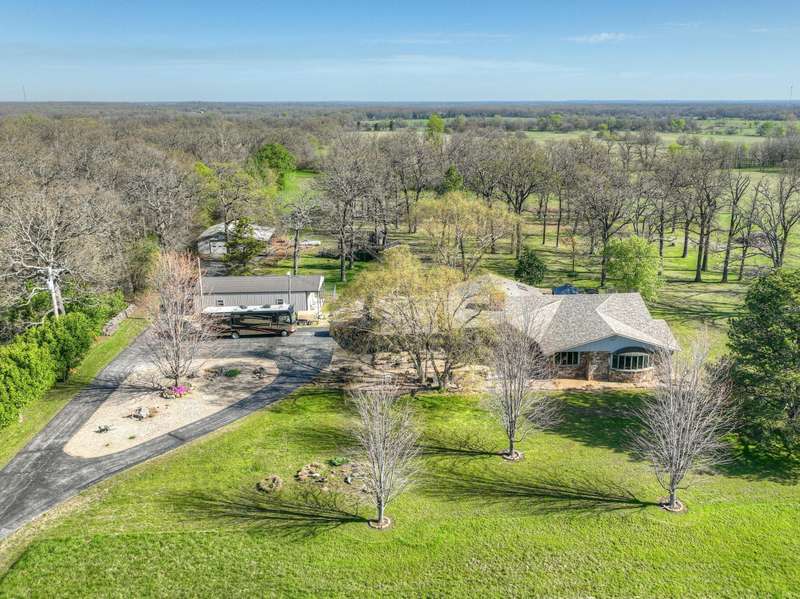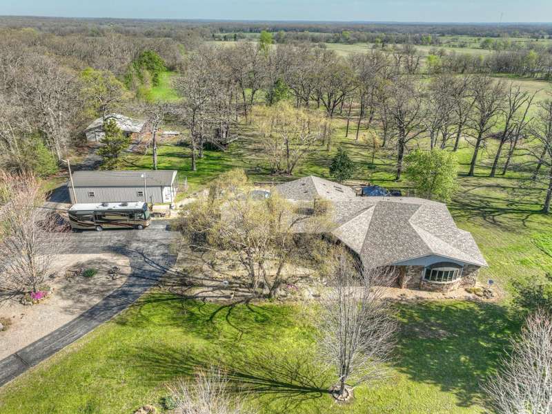 Don't miss out on this Custom Built home sitting on nearly 20 lush acres. Approximately 4900 sq ft of living. 3 bedrooms, 3 baths, Inground pool with hot tub. Two 1200 sq. ft. metal shops with overhead doors. Plenty of pasture for horses or cattle. Home sits back off Highway for privacy. Gourmet kitchen with granite countertops. Beautiful Sun Room off kitchen & dining. Check out the craftmanship of the intricate woodwork throughout. Fireplace is ducted thru home. Whole house generator, security system. Live like a King or Queen in the Master Bedroom.