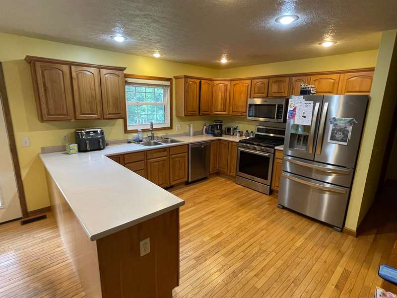 Come see this Beautiful 4 bedroom 2-1/2 bath home sitting on 1.5 acres in the quiet Legacy Meadows neighborhood. The home features a master bedroom on the main level as well as hardwood floors in the entry, living room, dining room as well as kitchen. The roof is less than 5 years old along with most of the appliances. Fresh paint job throughout and new carpet upstairs. Enjoy the private backyard on the covered deck that is only 3 years old. The 30 x 40 barn has its own 200 amp service as well as 3-50 amp 220 welding outlets.