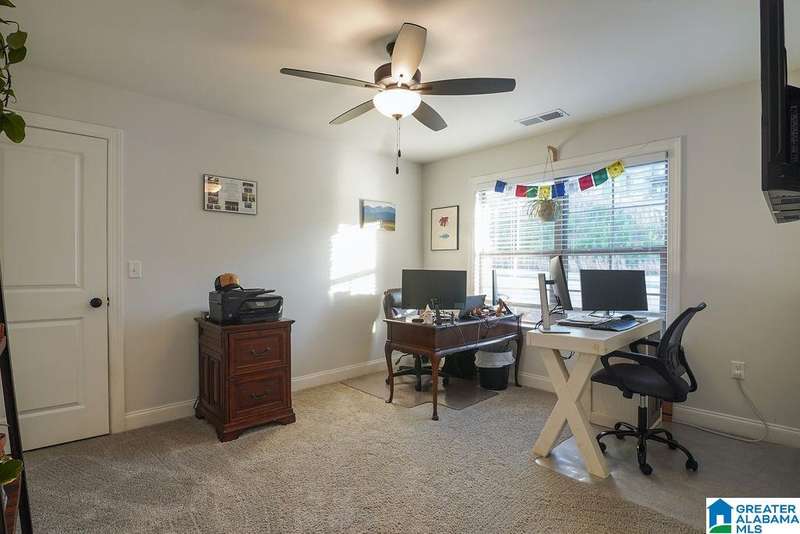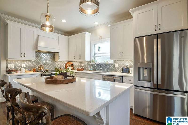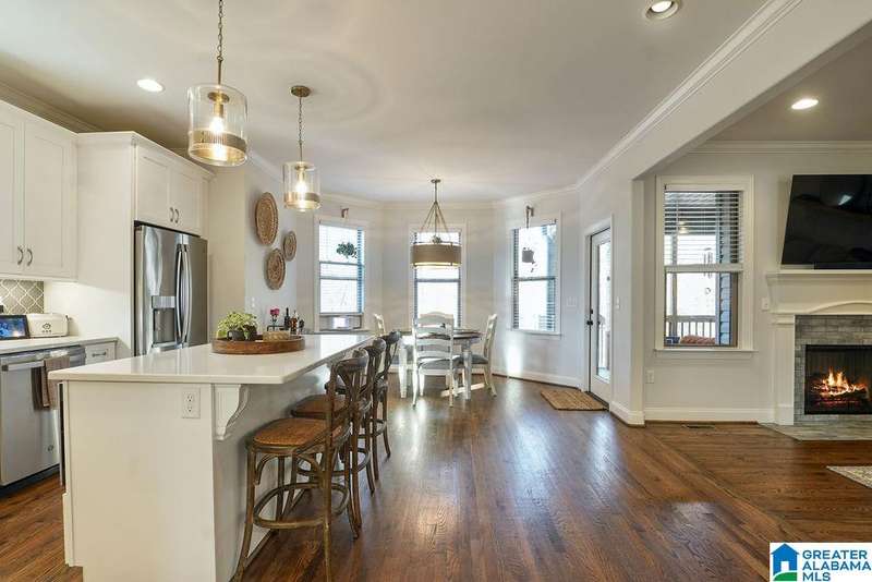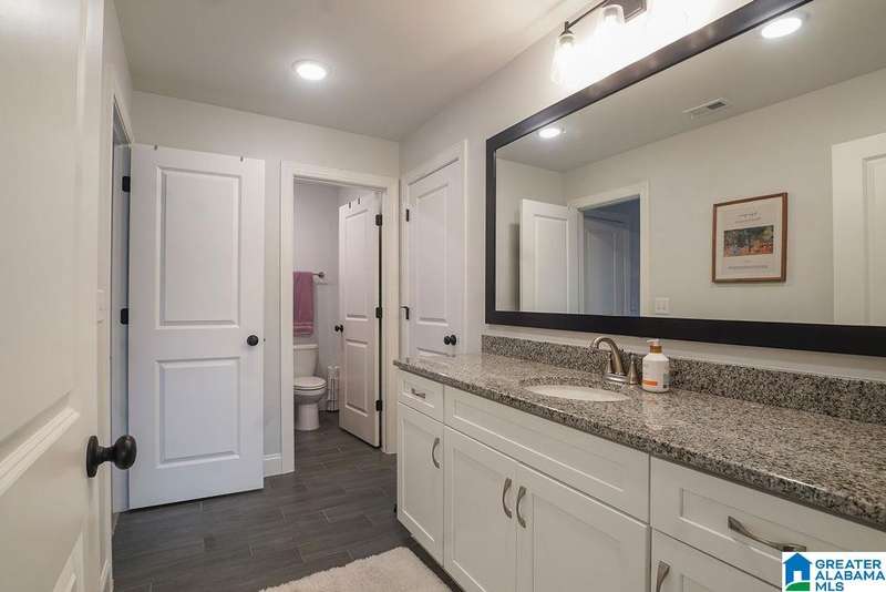 Beautiful Move-In Ready Home in Grey Oaks in Pelham This stunning 4-BR, 3.5-B home is nestled on a private half-acre lot. Fall in love with the large family room that flows seamlessly & opens up to the oversized eat-in kitchen which boasts stone countertops, lots of cabinets, stainless appliances, a large breakfast island, and cozy dining area that opens to a covered deck. Enjoy your morning coffee on the deck while overlooking your private yard which has a small creek that runs through the back and can be cleared to enjoy level area at the bottom. For effortless entertaining, there is a formal dining room as well. The spacious master bedroom features his and hers closets, an ensuite bath w/ separate vanities & a soaking tub. Upstairs, you’ll find 3 more bedrooms & 2 full baths, providing comfort & convenience for family and guests. The basement is stubbed & studded, ready for you to add a large flex room and bath.The 3 car garage includes installed cabinets for added storage.
