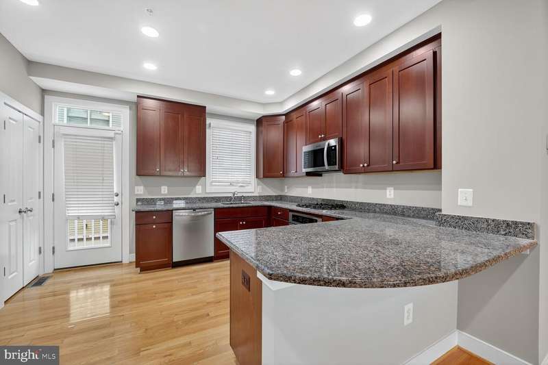 Stunning and freshly updated townhouse residence in an ideal North Old Town location. Completely repainted and updated throughout in modern tones, this three-bedroom plus den residence featuring three and one-half bathrooms offers incredible spaces for entertaining and work from home options. The entrance leads to an open concept living room and kitchen with space for a dining table. Hardwood floors though-out the living levels and nine-foot ceilings on the main level make the space feel open and airy. A requisite Chef's kitchen including granite counters, custom cabinets, stainless steel appliances, gas cooking, breakfast bar, and a large pantry. Trex deck off of the kitchen accommodates a grill or just a space to sit and relax The upper levels include a primary suite featuring a walk-in closet and spa bath including dual granite vanity and oversized shower. The second and third bedrooms also feature ensuite baths. A full-size stackable washer and dryer located in the main living hallway for convenience. The Rooftop terrace is a year-round retreat attached to a generous recreation room home gym, office or play room. A two-car garage tandem parking garage with extra storage and space for the trash cans encompasses the first level of the home. Also makes a great home gym. Sited only 4 blocks to Metro, 10 minutes to DC via GW Parkway or the Pentagon via Metro. Easily accessible to the river or the center of the King Street corridor. A convenient and accessible neighborhood set in a private space, close to everything Old Town Alexandria has to offer.