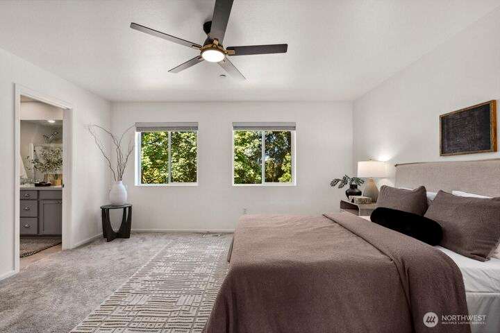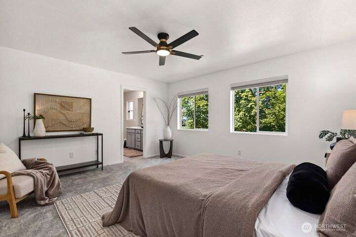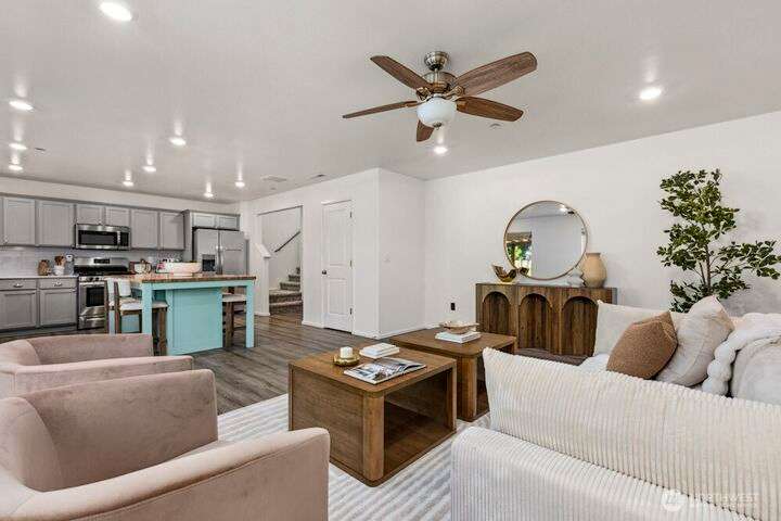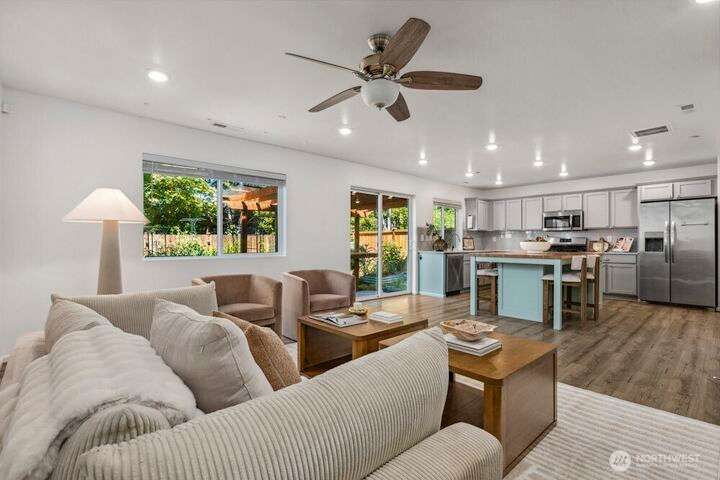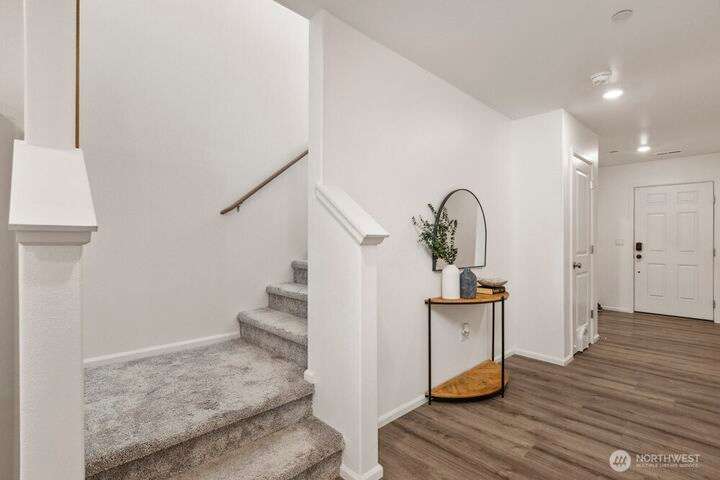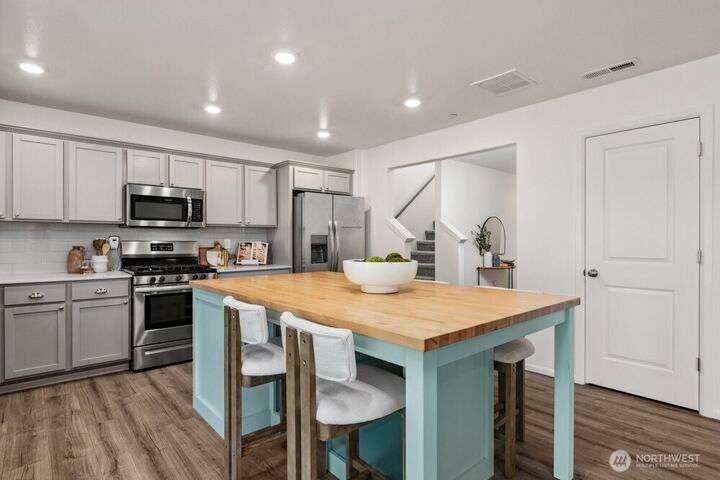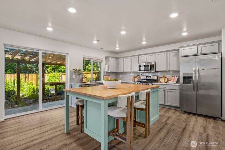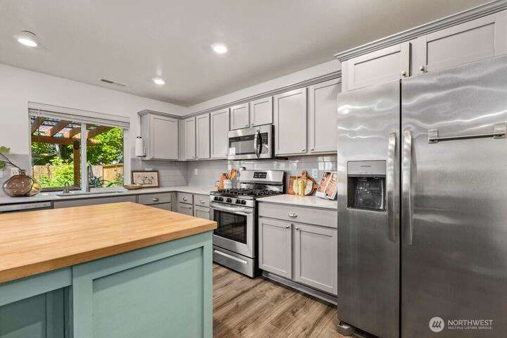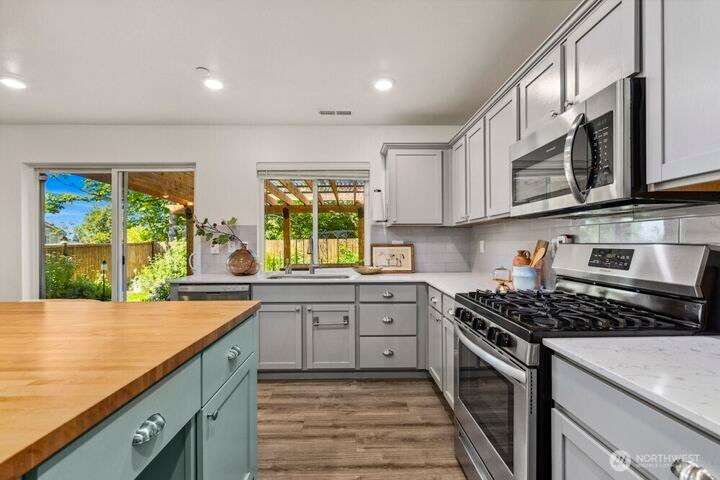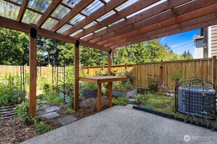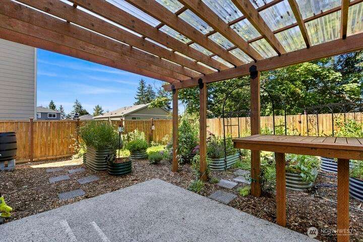 Nearly new with an impressive new price and ready for a quick move-in! This 2022 build offers keyless entry, smart features, a loft, air conditioning, a gourmet kitchen with stainless appliances, a walk-in pantry, & a custom-built island with built-in power. Live close to it all in this well-appointed Olympia home; minutes to Trader Joe's, I-5, HWY 101, & downtown. This property backs to a greenbelt with mature trees, and its low-maintenance front yard provides a stunning array of colorful blooms. The backyard is a PNW gardener’s paradise with raised garden beds & a covered patio that includes a built-in counter height table/potting workspace. Fully fenced & move-in ready, with fresh interior paint, this home is designed for a good life.