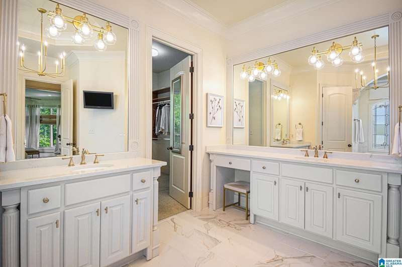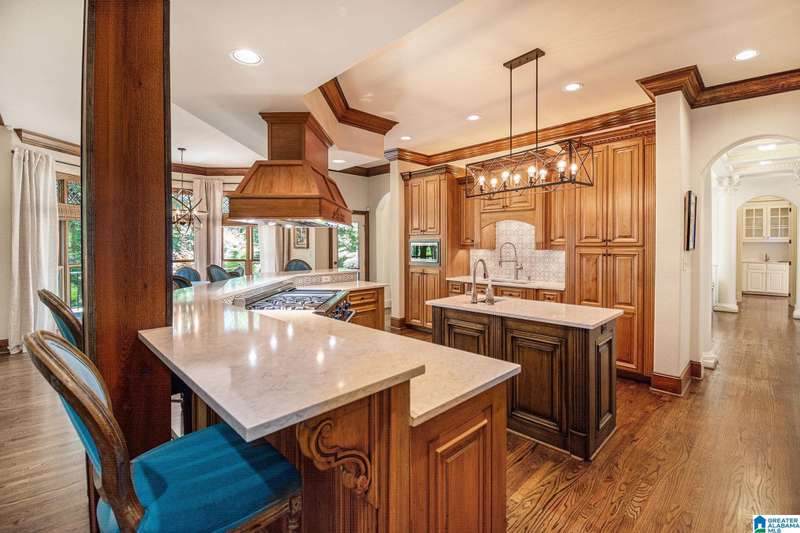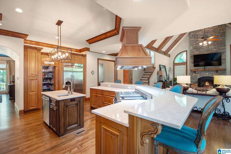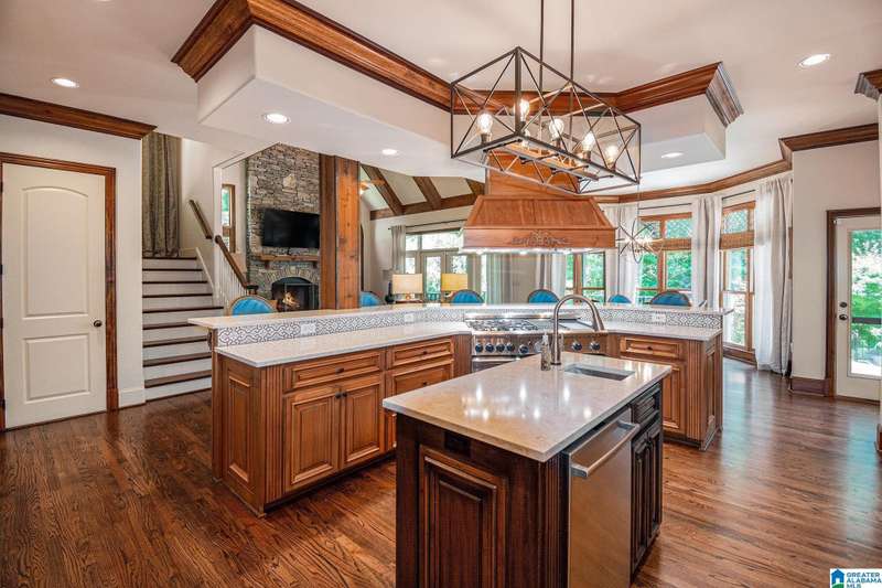 Greystone is one of Birmingham's premier communities featuring parks, water features, a country club with two renown golf courses, and gated access. This stunning executive home is on the 12th green. This kitchen truly is the heart of the home with professional grade appliances, gorgeous quartz counters, hidden pantry, and cabinet space galore & the kitchen flows to the breakfast room and keeping room with stone fireplace and custom millwork. The dining room is perfect for gatherings, and the great room has impressive backyard views. The primary suite has a wet bar, and the primary bath has been fully updated. The home office is privately tucked away on the main-level. Upstairs each of the four bedrooms has a private bathroom, and there is also a large bonus room. The daylight basement is ready to be built out. The backyard is beautifully landscaped and has a custom brick fireplace and a covered deck w/ slate flooring. Roof 4 years, HVAC newer, water heaters new.
