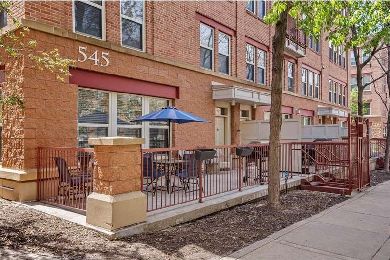 Townhouse-style condo in the heart of the North Loop, surrounded by beautiful trees and green space. This corner unit offers hardwood floors, smooth ceilings, an updated kitchen, and a main-level half bath. A private patio overlooks the courtyard and sits well back from the street. Upstairs you’ll find two bedrooms with windows, two full baths, a laundry room, and plenty of closet space. The home includes two underground parking stalls, extra storage, and onsite management. Excellent location near the riverfront, top restaurants, and retail. Dogs allowed in first-floor units only.