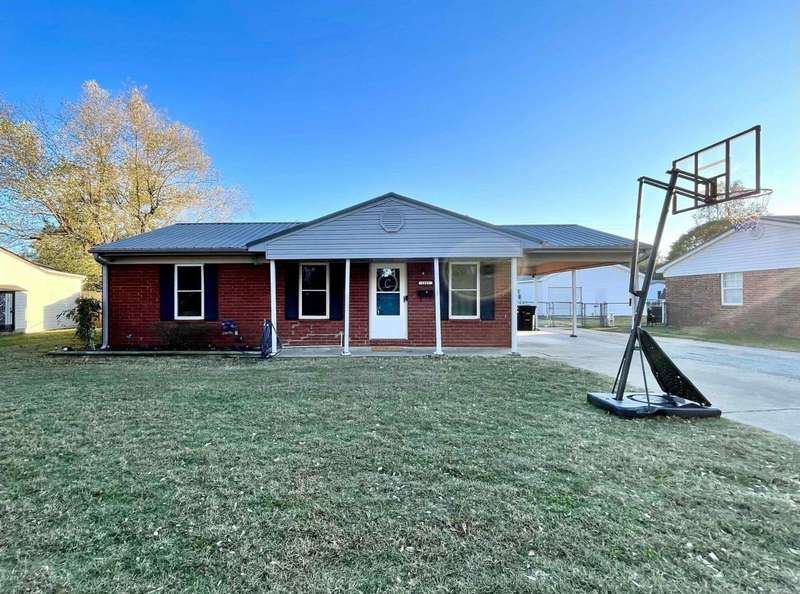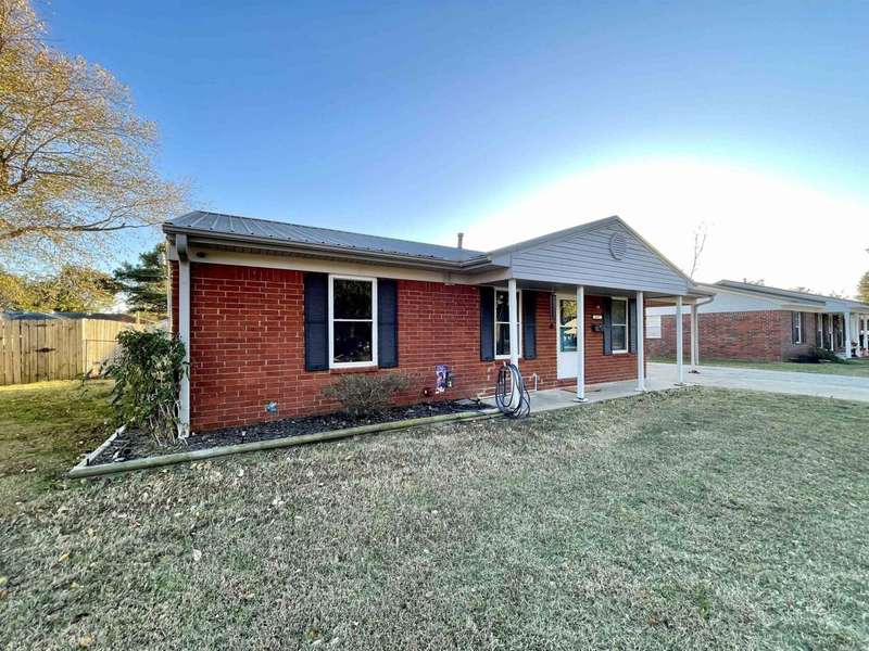 Cute low maintenance home on a slab, all brick, metal roof, no carpet, separate laundry room, covered back patio - there are lots of details to love about this one! The primary bedroom has a large walk in closet. Luxury vinyl plank flooring was put in the kitchen, living, and hallway in 2023, and luxury vinyl tile was put in the bathroom. The dishwasher and microhood were also installed in 2023. The water heater was replaced in 2020. The metal roof was installed in 2016 and new AC in 2017. This one is ready to move in at an affordable price!