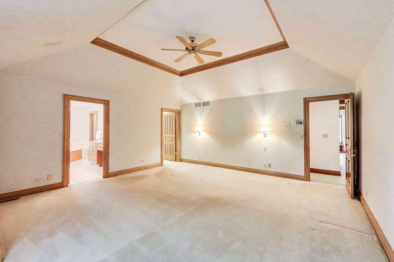 Looking for a home ON THE COURSE? Welcome to this stately, custom-built home in the coveted Royal Fox club community. Overlooking the 2nd hole of the Royal Fox Golf Course, this home offers serene GOLF COURSE VIEWS. With over 6,000 finished square feet, this residence features 5 generously sized bedrooms, including a MAIN FLOOR EN SUITE - ideal for guests or multi-generational living. The spacious screened porch and backyard deck invite you to relax and watch the golfers go by. Inside, you'll find CUSTOM MILLWORK, HARDWOOD FLOORS and VAULTED CEILINGS that give the home an elegant, open feel. The formal living room with fireplace and built-ins, plus a tray-ceilinged dining room, offer classic entertaining spaces. The large, eat-in kitchen is open to the great room - a stunning TWO-STORY SPACE which anchors the main level. Enjoy the WALL OF WINDOWS that floods the room with natural light and frames breathtaking golf course views. Upstairs, the primary suite is a retreat, boasting a walk-in closet that doesn't end. The second floor also features three additional bedrooms, one en suite, and the other two sharing a Jack and Jill. The finished LOOKOUT BASEMENT offers even more room to enjoy - with a spacious rec area, wet bar, third fireplace, and custom PUTTING GREEN - perfect for golf lovers and entertainers alike. While the home retains its vintage charm, it offers a ready canvas for modern updates, giving the next owner the fun and freedom to infuse their own style. With newer roof and mechanicals, the big-ticket items are done - leaving you to focus on the fun part: making it YOUR dream home (not someone else's!) If you've been waiting for the right home on the golf course - in a community that defines luxury and lifestyle - this is it!
