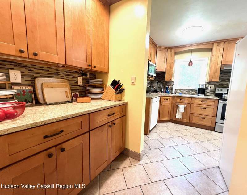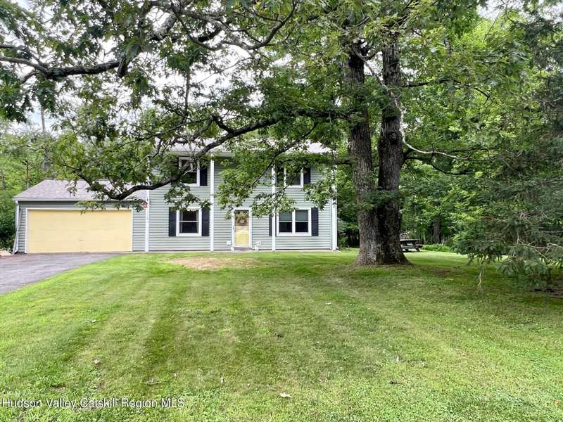 Classic Colonial Charm in Prime Location First time on the market in decades. This lovingly maintained and stately Colonial sits on over half an acre just minutes to the heart of the Village of Woodstock. A perfect blend of tranquility and convenience. From the moment you arrive the curb appeal is apparent, with its expansive front lawn, mature trees and its timeless architecture. Inside the main level offers a spacious living room with wood stove & French doors that open to a cozy stone patio - ideal for relaxing or entertaining -leading to a lush backyard of greenery with room to relax, garden and entertain and yours to design your outdoor experiences. The recently remodeled kitchen flows into a cozy dining room, making everyday meals or special gatherings a delight. Adjoining the kitchen and dining room is a built in buffet, perfect for additional serving and storage space. Just off the kitchen, you'll find a convenient laundry room, half bath and access to the attached two-car garage. Upstairs are 4 bedrooms and a full bath, with ample closet and storage space throughout the home. Whether you're looking for a full-time residence or serene country escape, this property is a rare find and a great value in todays market. If you're ready to put down roots and enjoy the good life, don't miss the very affordable opportunity. Run don't walk!